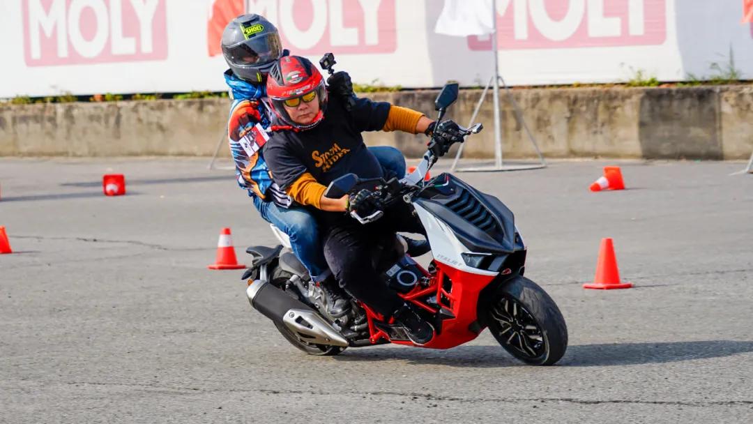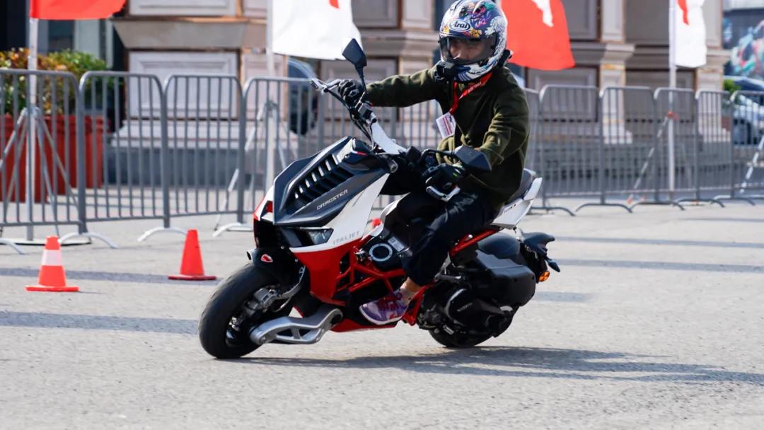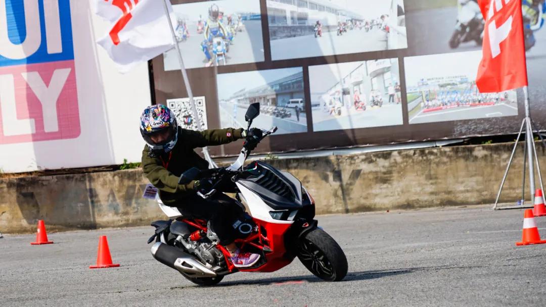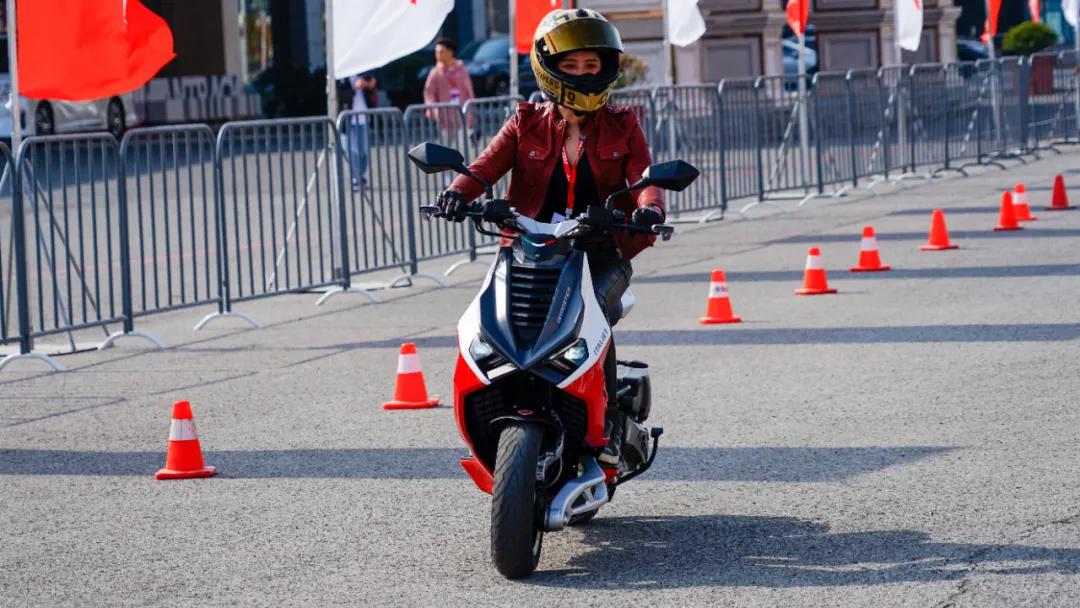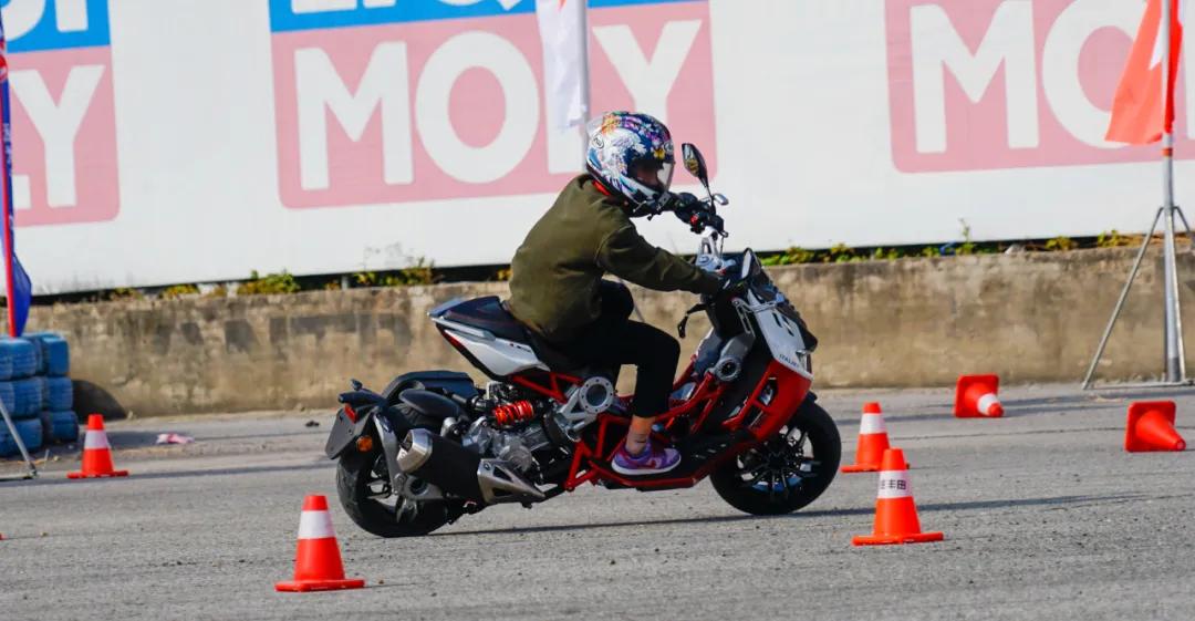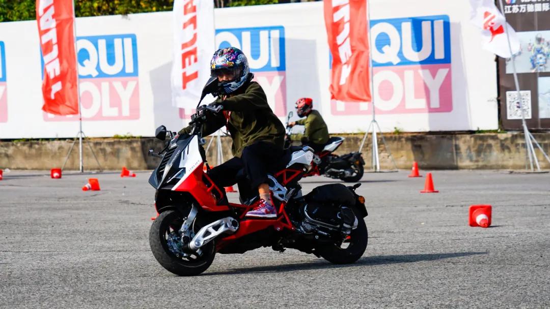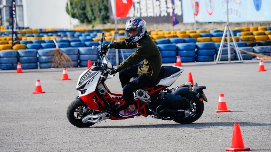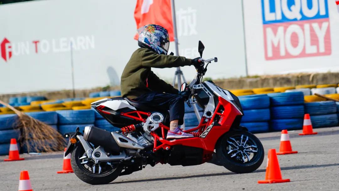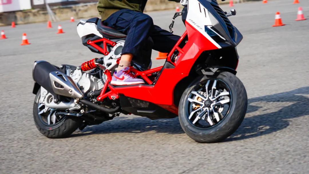 發(fā)動(dòng)機(jī)部分搭載的是一臺(tái)實(shí)際排量為189cc的DOHC四氣門(mén)水冷發(fā)動(dòng)機(jī),匹配馬瑞利電噴系統(tǒng),經(jīng)過(guò)調(diào)校后最大功率14.6Kw出現(xiàn)在8250轉(zhuǎn),最高轉(zhuǎn)速也會(huì)比普通踏板車(chē)更高一些,最大扭矩17N.m出現(xiàn)在6250轉(zhuǎn)。從賬面數(shù)據(jù)就不難看出這是一臺(tái)調(diào)校偏向于高轉(zhuǎn)速發(fā)力的發(fā)動(dòng)機(jī),實(shí)際試駕下來(lái)情況也是如此,以至于在有限的場(chǎng)地內(nèi)并不能試出這臺(tái)車(chē)的實(shí)力。不過(guò)偏高轉(zhuǎn)的設(shè)定在跑山或是極致玩家下賽道的情況下,這臺(tái)車(chē)一定非常有趣!