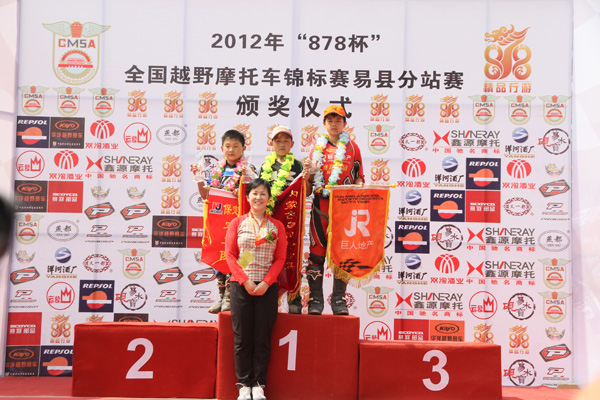 北京時間4月15日,2012年全國摩托車越野錦標賽揭幕戰(zhàn)在河北易縣落幕,經(jīng)過兩場比賽的爭奪,來自云南巨人地產(chǎn)摩托車隊的楊潔戰(zhàn)勝了隊友許健豪獲得進口250CC A組冠軍,為自己的新賽季開了一個好頭。進口150CC組重慶渝安新感覺賽車隊的蒲陽奪冠,內(nèi)蒙古烏拉特后旗賽車隊的烏日嘎獲得國產(chǎn)110CC青少年組的冠軍,浙江艾克仕隊的李勇獲得國產(chǎn)250CC A組冠軍。值得一提的是主場作戰(zhàn)的878基地PROGRIP賽車隊收獲頗豐,桂海波獲得國產(chǎn)150CC組冠軍,賈貝貝一人獨得國產(chǎn)250CC B組和進口250CC B組兩項冠軍,劉福軍也在這兩項比賽中斬獲第二及第三名。