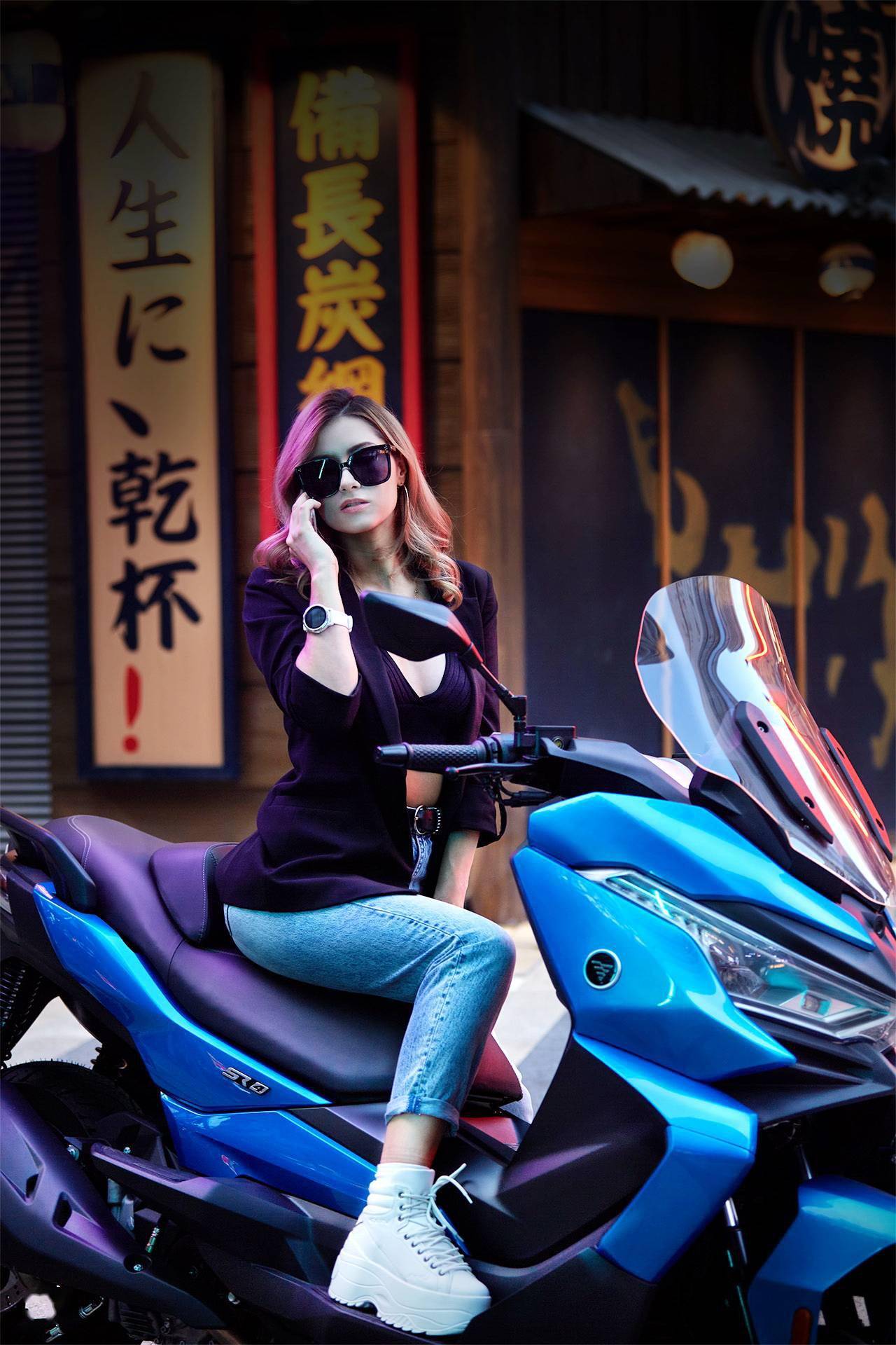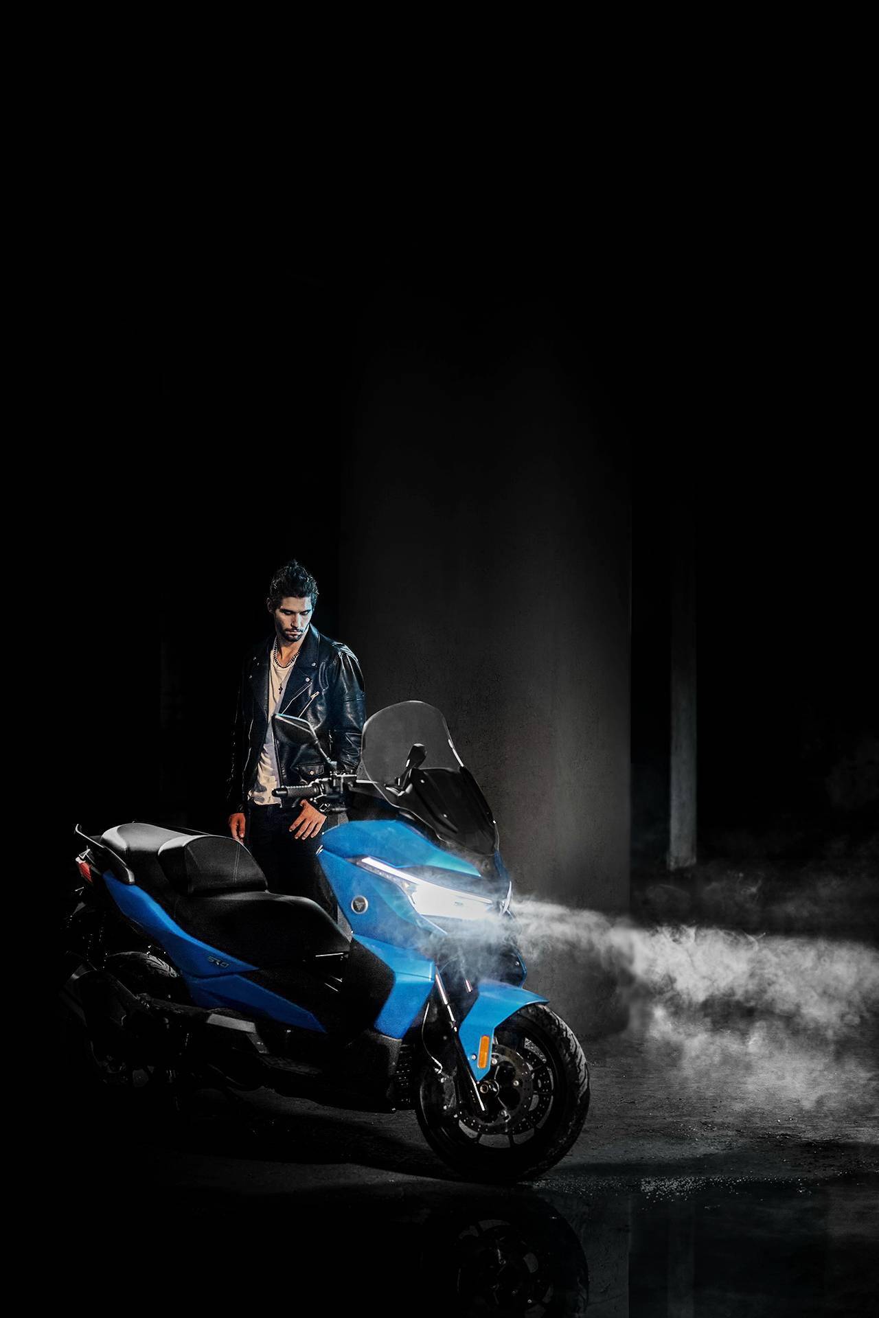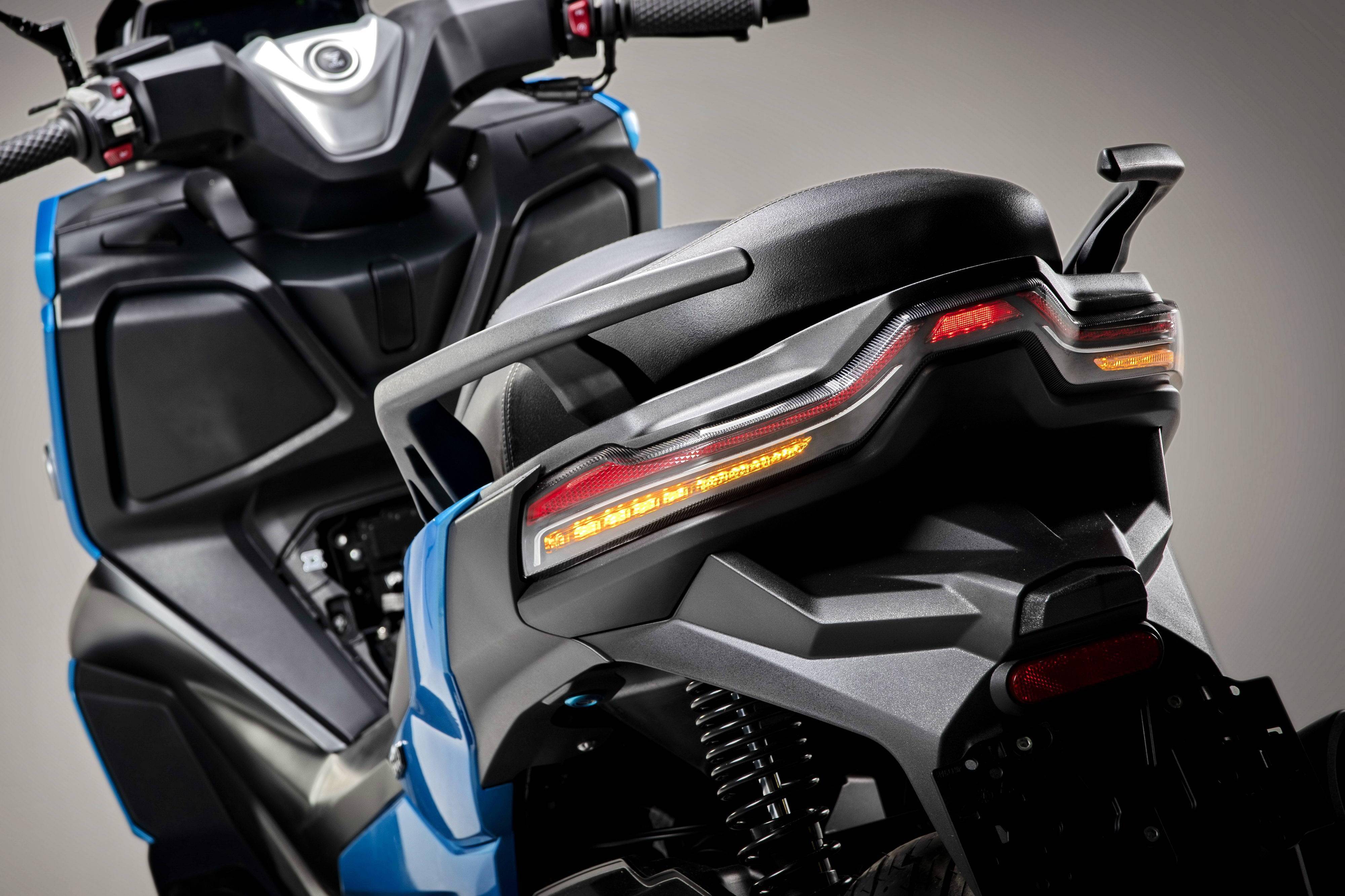 車體采用一副方形截面的鋼管式車架,KYB 配套的懸掛系統(tǒng),LED 的前大燈,前風擋的防護罩下、內置了攝像頭,數字式的儀表板,與 BMW C400X 同規(guī)格的前 15(120/70 - 15)、后 14(150/70 - 14)英寸直徑的輪框。