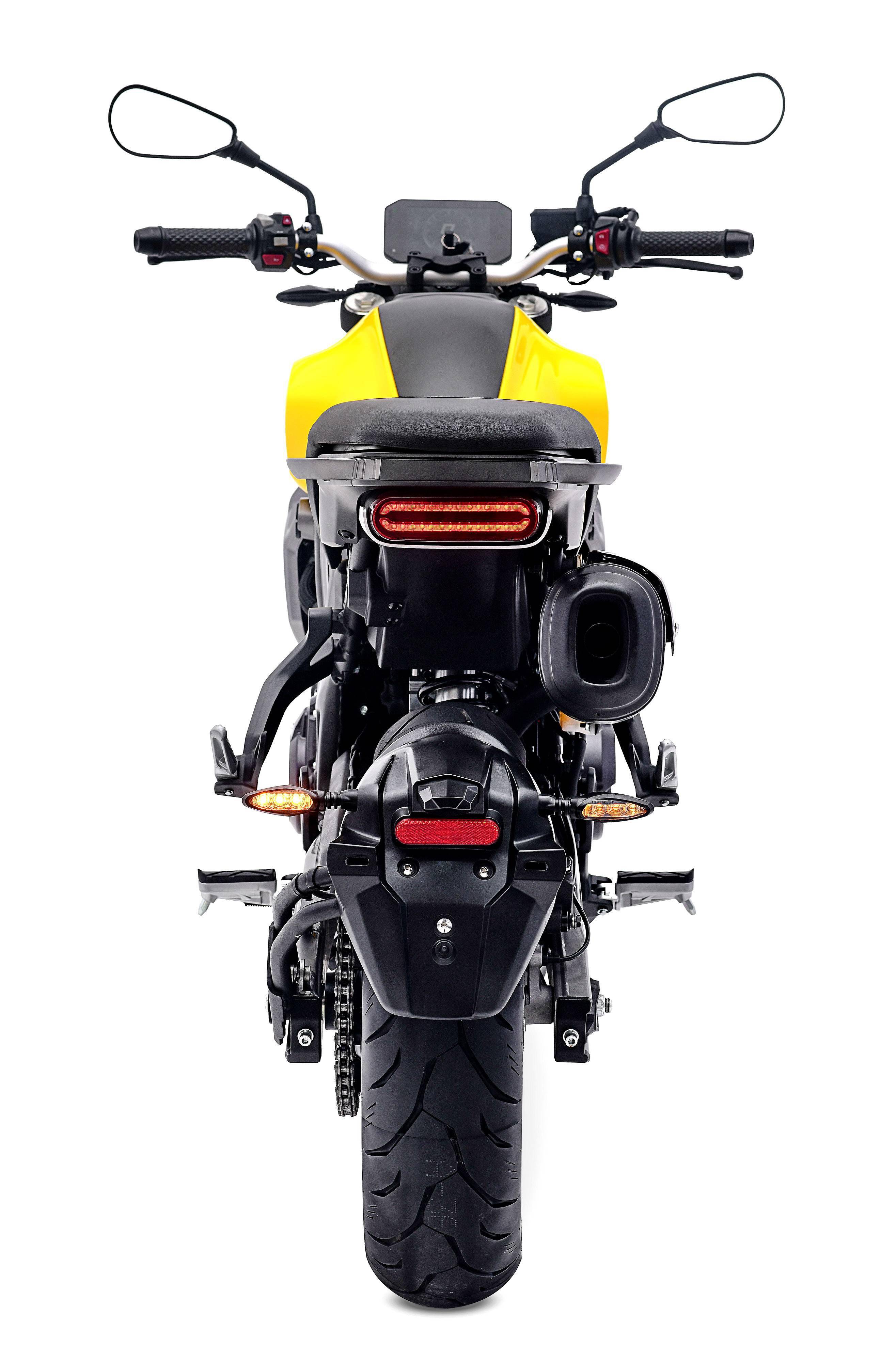 車體方面,采用一個復古的外觀風格,鋼管式的車架,雙通道的 ABS,數字式的儀表板等。