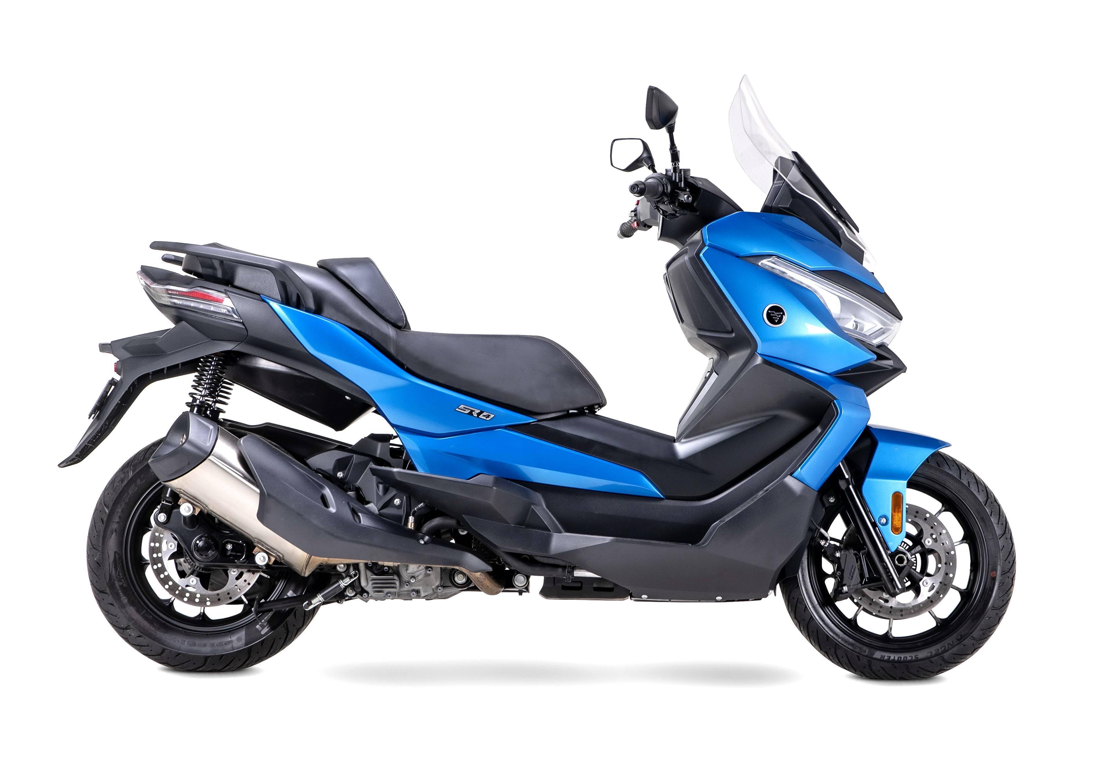 新的 SR4 是 VOGE 的第一款踏板車型,該車搭載一副與 BMW C400 平臺同工作數據的水冷單氣缸發(fā)動機,缸徑、行程同為 80 mm x 69.6 mm,排氣量同為 349.8 cc,最大動力輸出 21.2 kw(約 28.5 匹。而 BMW C400X 的最大動力輸出為 25 kw/約 34 匹)。