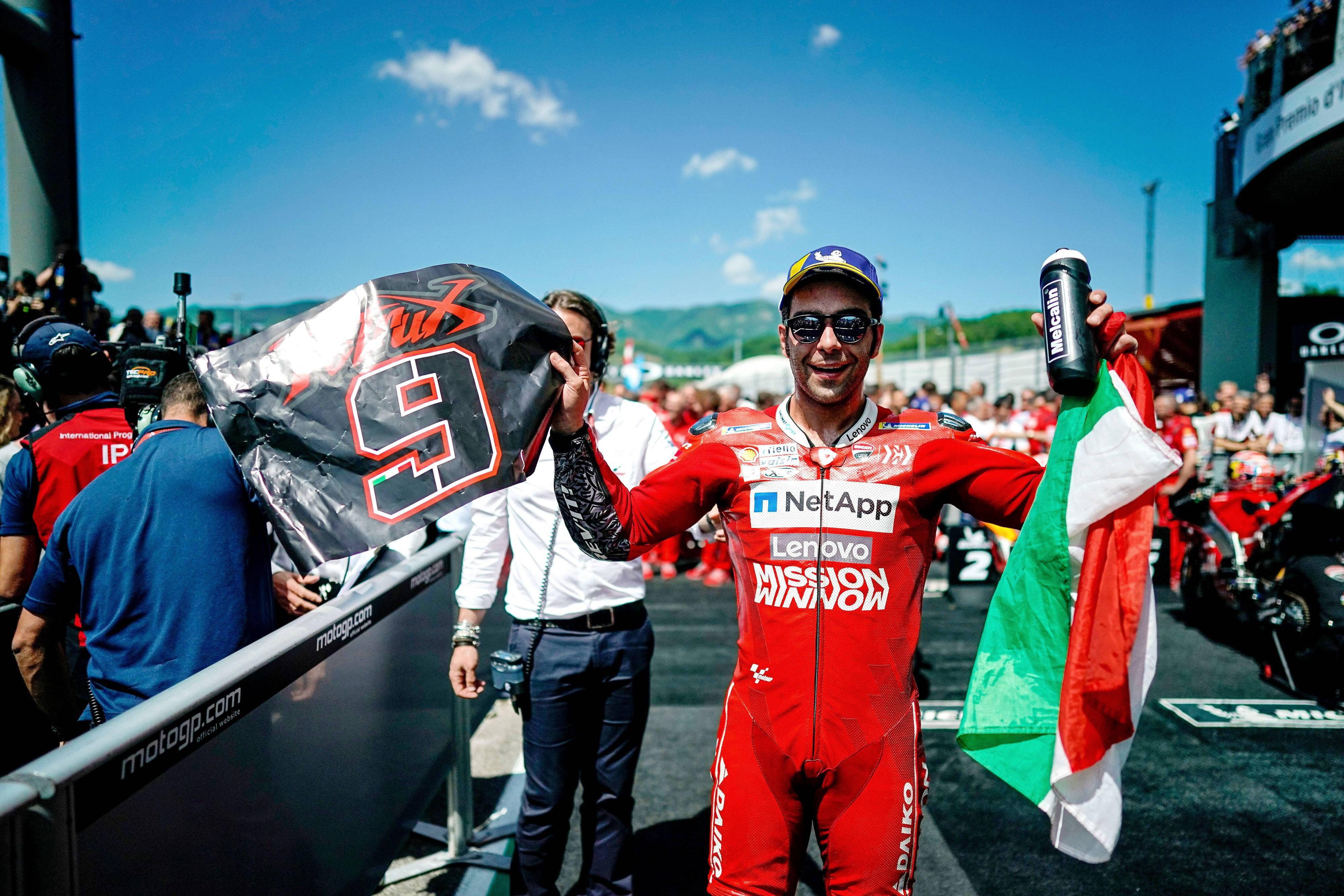 下面的圖片,2019&apos MotoGP 意大利木杰羅站,佩魯奇奪得了 MotoGP 職業(yè)生涯的首個(gè)分站冠軍(資料圖片)。