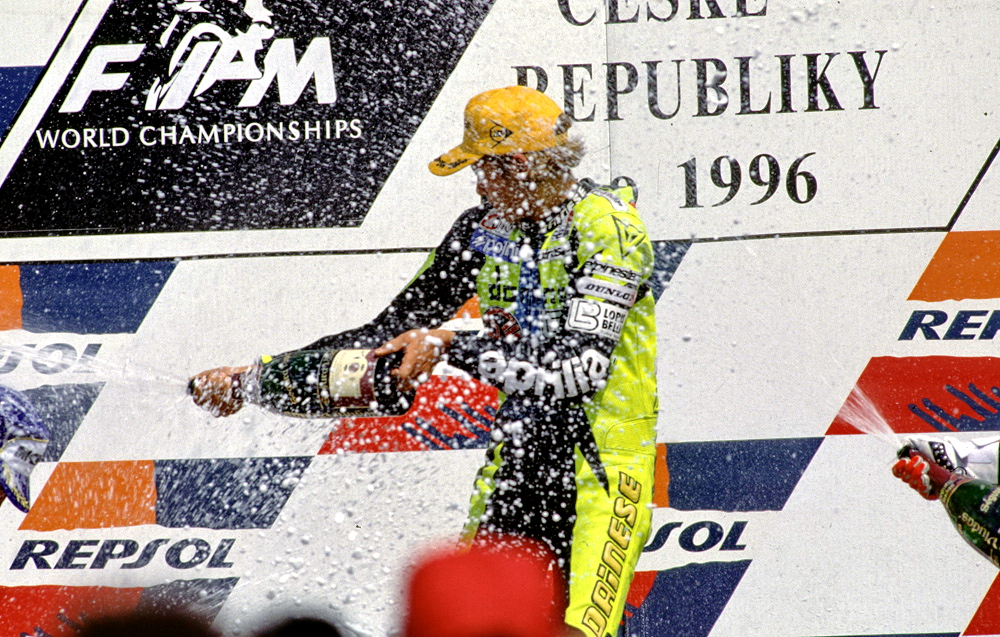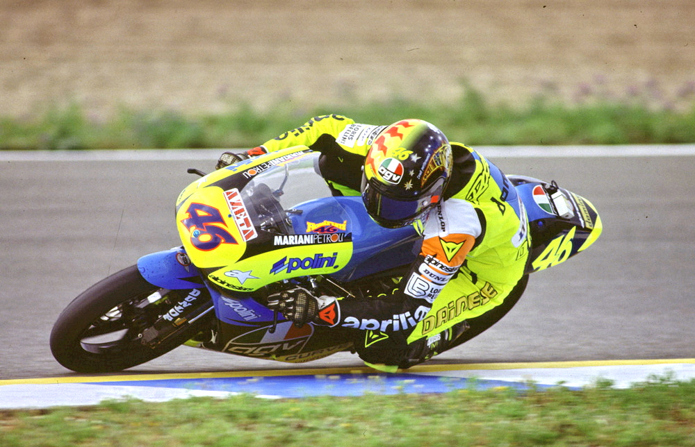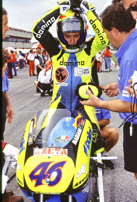 下面的圖片,1996 年、首次全季參加世界錦標(biāo)賽 WGP125 級別比賽的羅斯(資料圖片。圖片來源:Rossi 官網(wǎng))。