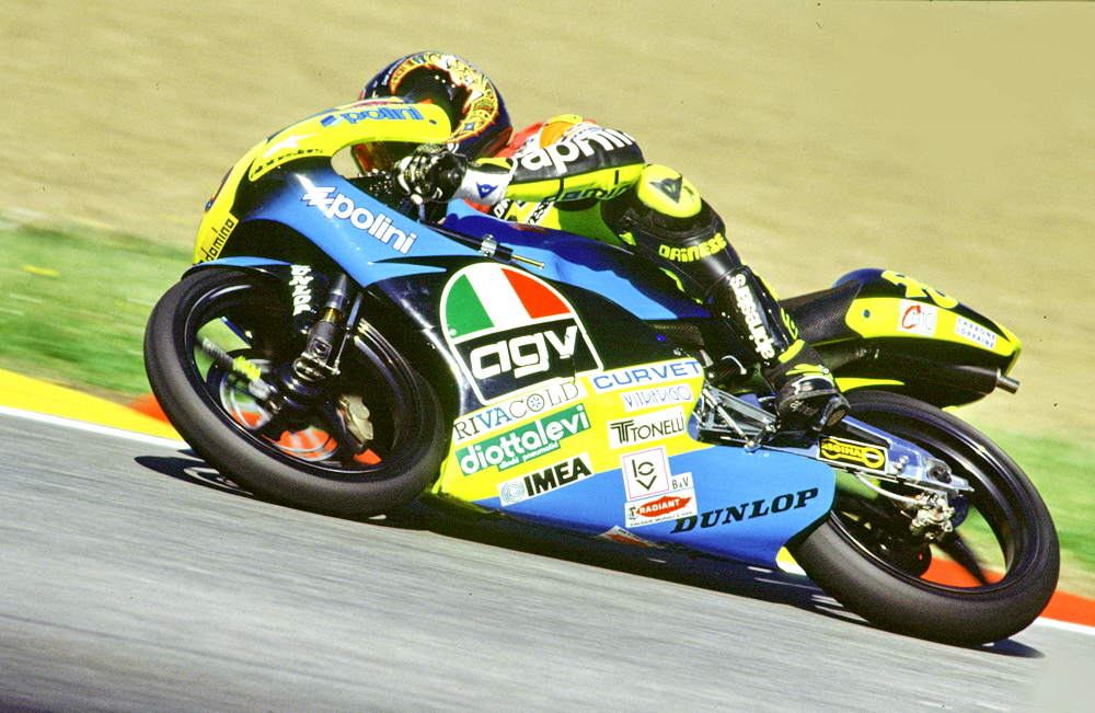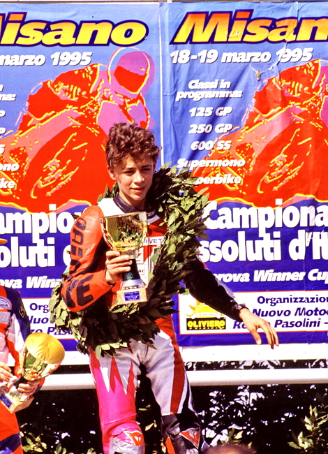 下面的圖片,1995 年、參加意大利本土錦標(biāo)賽的羅斯(資料圖片。圖片來源:Rossi 官網(wǎng))。