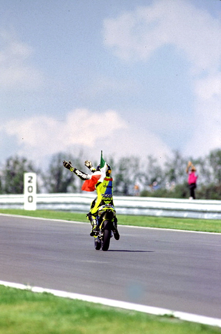 上世紀(jì)的九十年代里,不同的車手陣營里(那年頭,GP500 的冠軍之爭主要是美國車手大戰(zhàn)澳大利亞車手)、有著各自的特點,從歷史的跨度來說,羅斯的光芒,似乎放在千禧年之后、進入了四沖程 MotoGP 的時代,或許是更適合一些 —— 因為剛剛進入到要把原本就屬于旱澇保收、并久經(jīng)時間考驗的兩沖程 500 cc,轉(zhuǎn)變?yōu)樗臎_程,等于把原來成熟的一切都推倒重來,無論是參賽的企業(yè)還是 FIM 都將面臨著一個巨大的不確定因素,技術(shù)上的徹底革新、是一個本質(zhì)性的變化,這有別于失去煙草的贊助商。作為一個常規(guī)觀眾,即使到了 2002 年、2003 年看比賽的時候,心底里還是或多或少地期待著 500 cc 級別兩沖程的 V4 機器,能夠干翻那些排氣量大了一倍的四沖程機器。