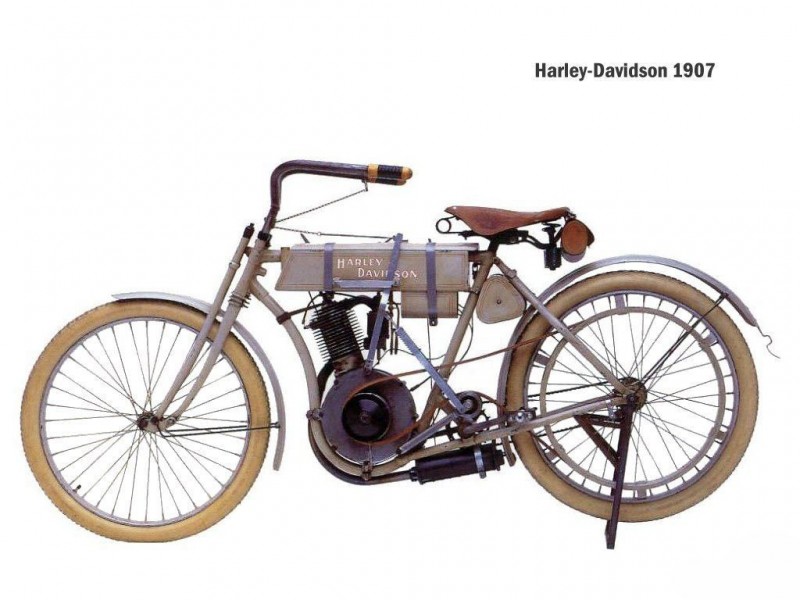 21歲的威廉·S·哈雷和20歲的阿瑟·戴維森宣布生產(chǎn)出了第一臺(tái)哈雷戴維森-電動(dòng)自行車。該電動(dòng)自行車是作為賽車設(shè)計(jì)的,缸徑和行程分別為3.125和3.5英寸。他們的工廠只是一個(gè)10 x 15 英尺大小的木棚,"哈雷戴維森汽車公司"的字樣被隨意涂寫在門上。阿瑟的弟弟沃爾特后來(lái)也參與了他們的工作。