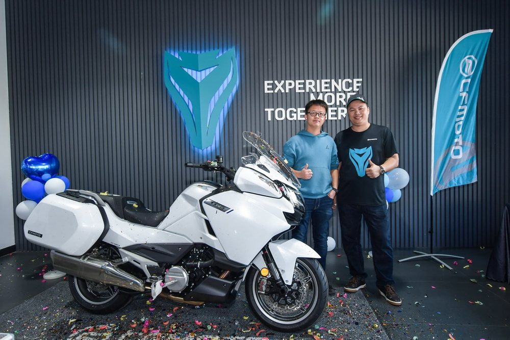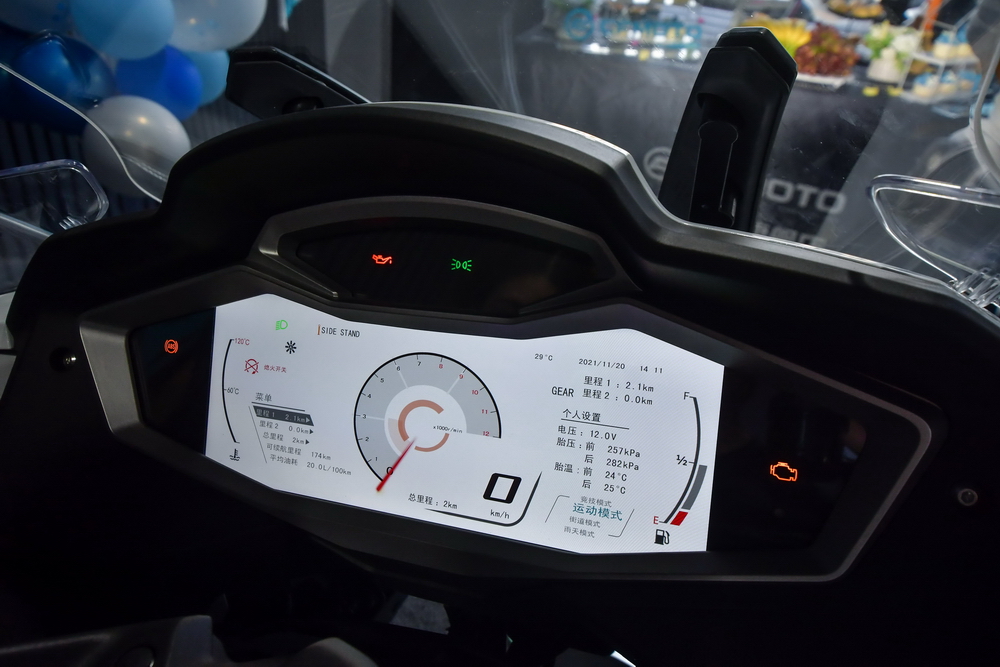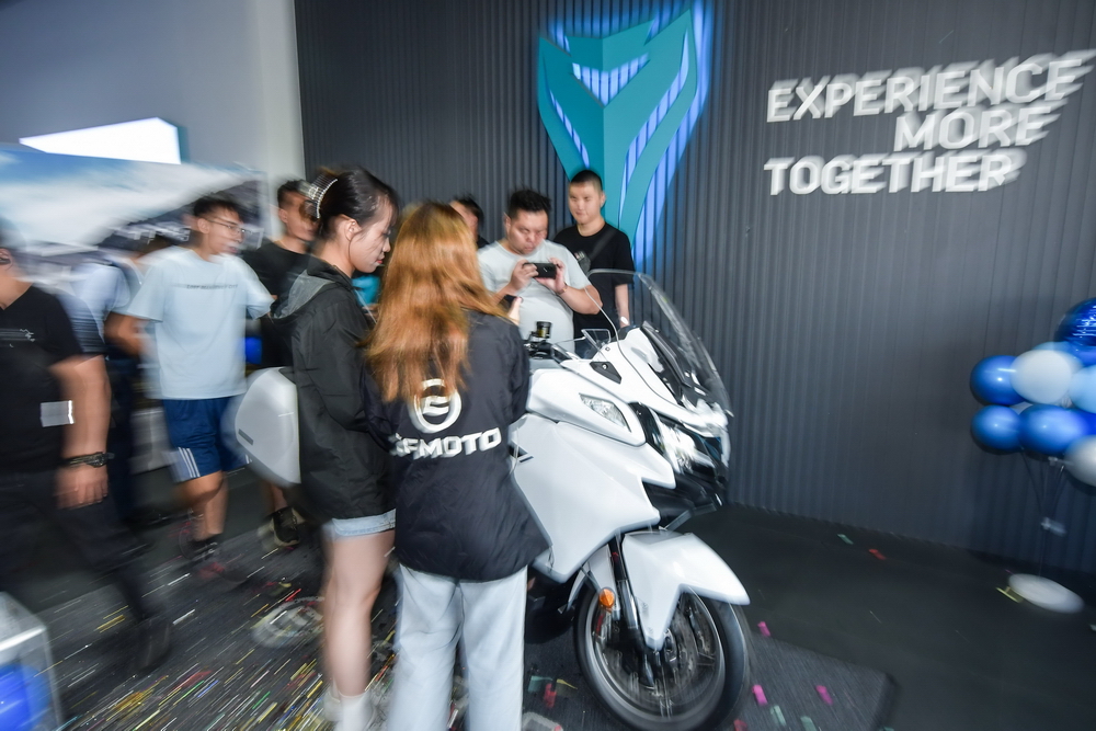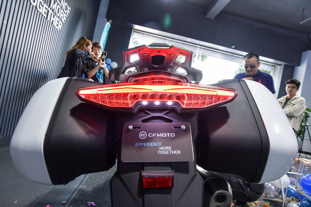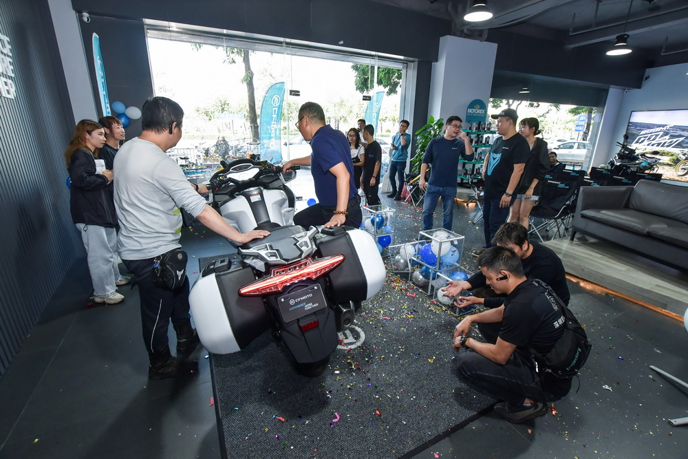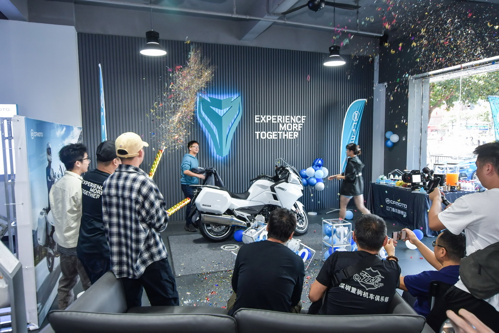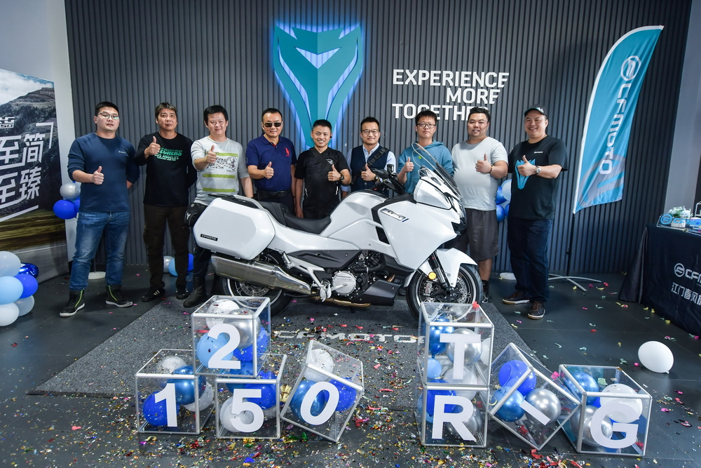 2021 年十一月 21 日,CF MOTO 春風(fēng)摩托(浙江春風(fēng)動力股份有限公司)江門旗艦店,在浙江春風(fēng)動力廣東區(qū)域代表續(xù)延利和春風(fēng)江門店負(fù)責(zé)人盧彬的見證下,為春風(fēng)公升級旗艦車型 1250 TG-R 進行簡單而隆重的的新車品鑒活動。幾十位來自江門附近/周邊區(qū)域的春風(fēng)車主也驅(qū)車前來,一起評頭品足地欣賞了 1250GT-R 的實車風(fēng)貌。