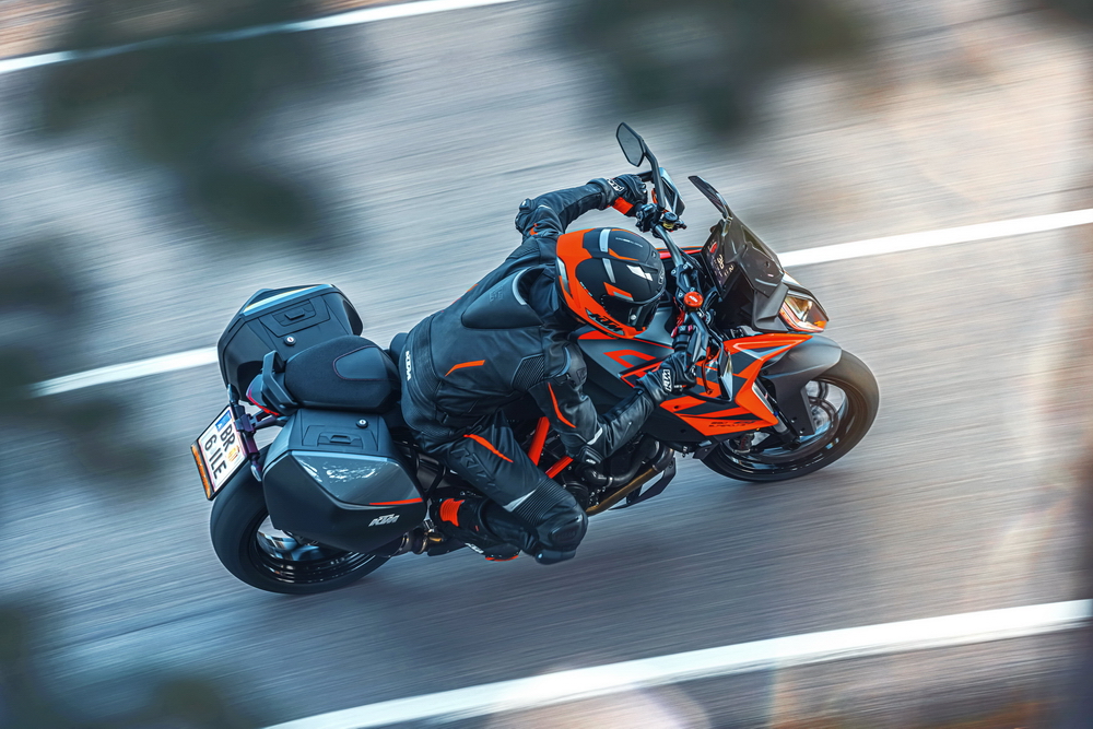 顧名思義,新的 1290 Super Duke GT 就是在運(yùn)動(dòng)街車 Super Duke 的基礎(chǔ)上延伸而來,KTM 將 GT 歸類為 Sports Tourer 運(yùn)動(dòng)旅行車,采用的是前后 17 英寸車輪、適合常規(guī)公路使用的車型。而 Adventure 探險(xiǎn)類的車型(譬如同動(dòng)力平臺(tái)的 1290 Super Adventure),被歸類為 Travel 遠(yuǎn)程車,采用的是有著較好野外通過能力的前 21、后 18 英寸車輪。