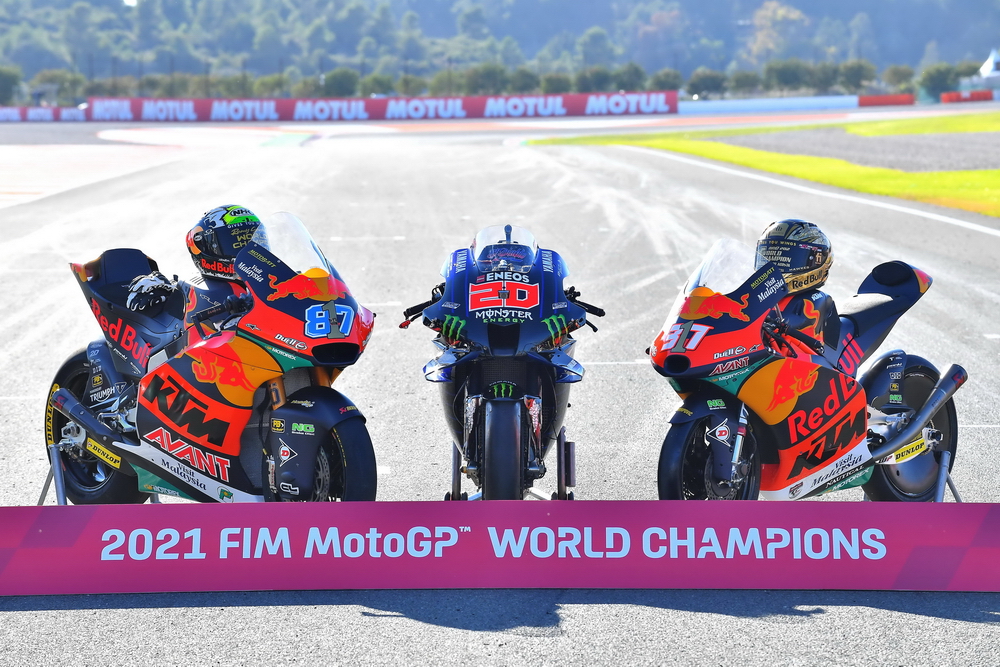 2021 賽季,KTM 兵團奪得了 Moto2、Moto3 級別的世界冠軍(車手),車手分別是來自澳大利亞的加德納(Remy Gardner,Moto2 級別世界冠軍)、西班牙的阿科斯塔(Pedro Acosta,Moto3 級別世界冠軍)。而 MotoGP 級別的世界冠軍、則被 Yamaha 的法國車手夸塔拉羅(Fabio Quartararo)奪得。