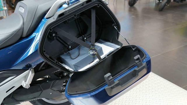 原廠標配GIVI的43.3L容量的邊箱,可以輕松放下各種尺寸的全盔,而邊箱與車身的保持配色一致,不會破壞整體美感。