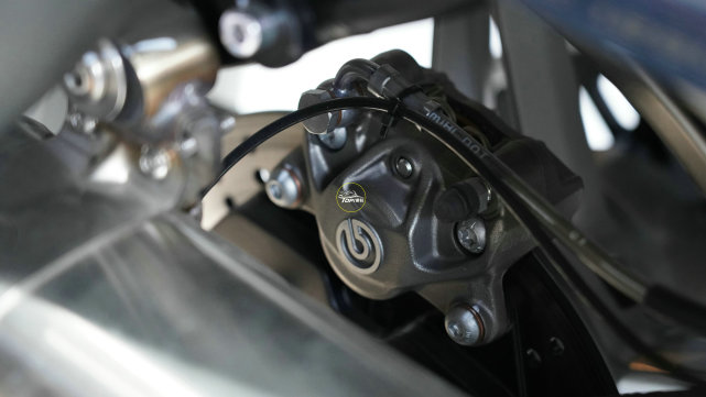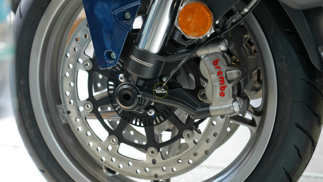 后剎車采用270mm固定單盤與Brembo對向雙活塞卡鉗的組合,前后標配ABS系統(tǒng),而且均具備彎道功能。