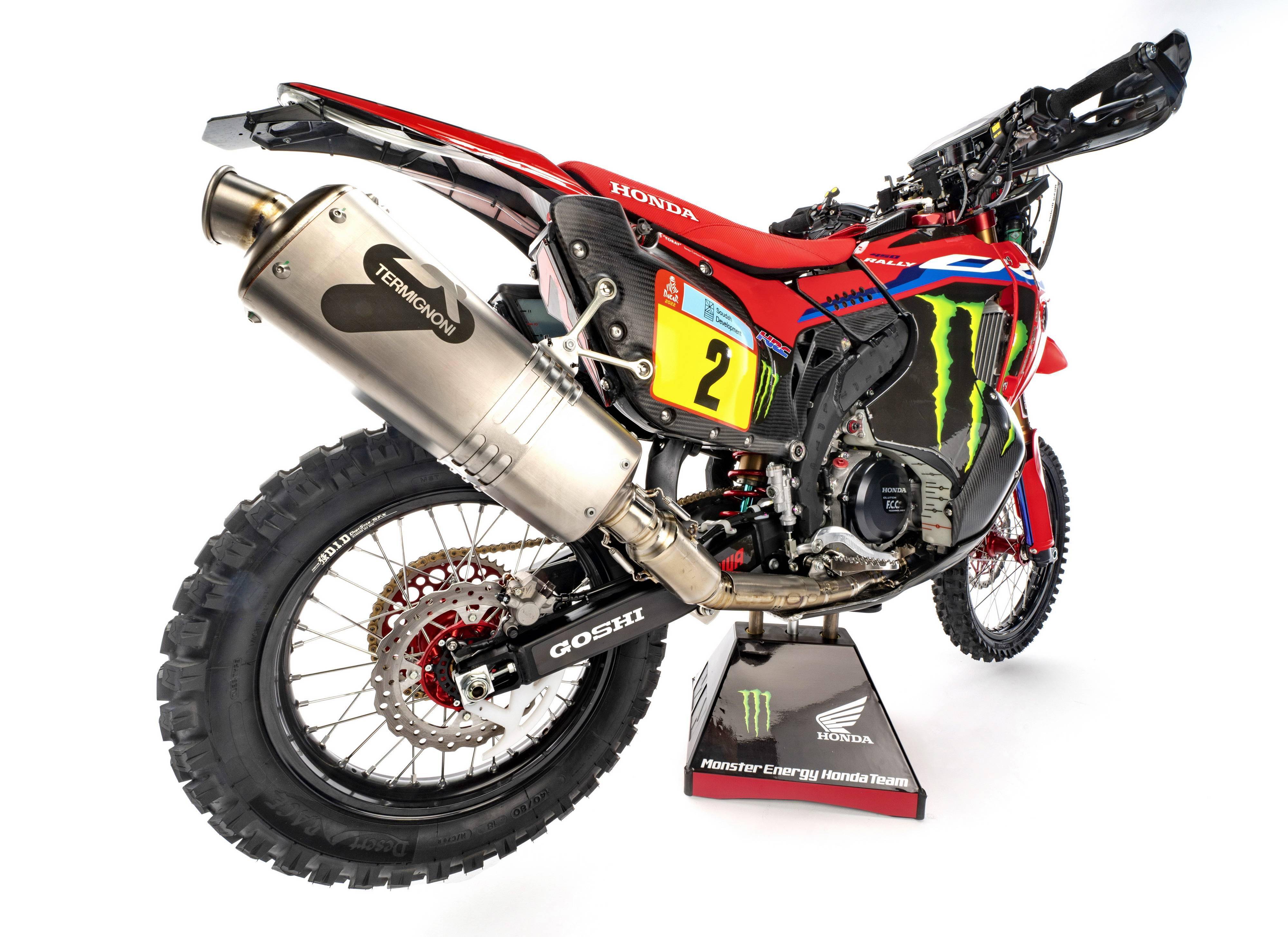 HRC 的達(dá)喀爾拉力賽/ FIM 越野拉力世界錦標(biāo)賽里的工廠賽車 CRF450 Rally,以市售越野賽車 CRF450R/CRF450X 為基礎(chǔ)、經(jīng)過大量改裝而成,搭載一副水冷四沖程單氣缸的發(fā)動(dòng)機(jī),車體采用一副雙翼樑式的車架,特制的賽車懸掛系統(tǒng)等。HRC 稱,自 2018 年對(duì) CRF450 Rally 工廠賽車進(jìn)行了大幅升級(jí)之后,其戰(zhàn)斗力是有目共睹的。新版本的工廠賽車,是以之為基礎(chǔ)作進(jìn)一步更新之后的成果。