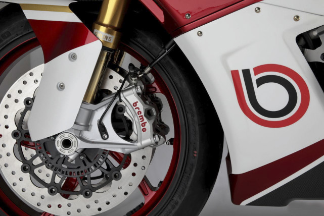 底盤部分,320mm雙前盤搭配Brembo單體卡鉗,后220mm單制動盤搭配Brembo單活塞卡鉗。還有鍛造鋁輪輞和倍耐力Diablo Rosso III輪胎。前后避震均由Ohlins提供,配備FGRT 43 NIX30倒立式前叉和TTX36中置后避震。