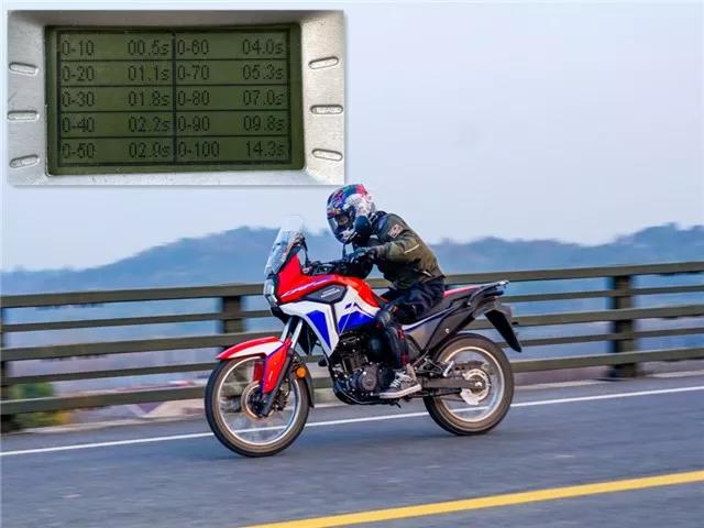 性能測試是評測中不可或缺的一環(huán),即使CRF190L已然被我定義為更適合非鋪裝路面的車輛。測試環(huán)境平路無風,測試者體重50kg。零百加速經多次測試后得出最好成績?yōu)?4.3s。