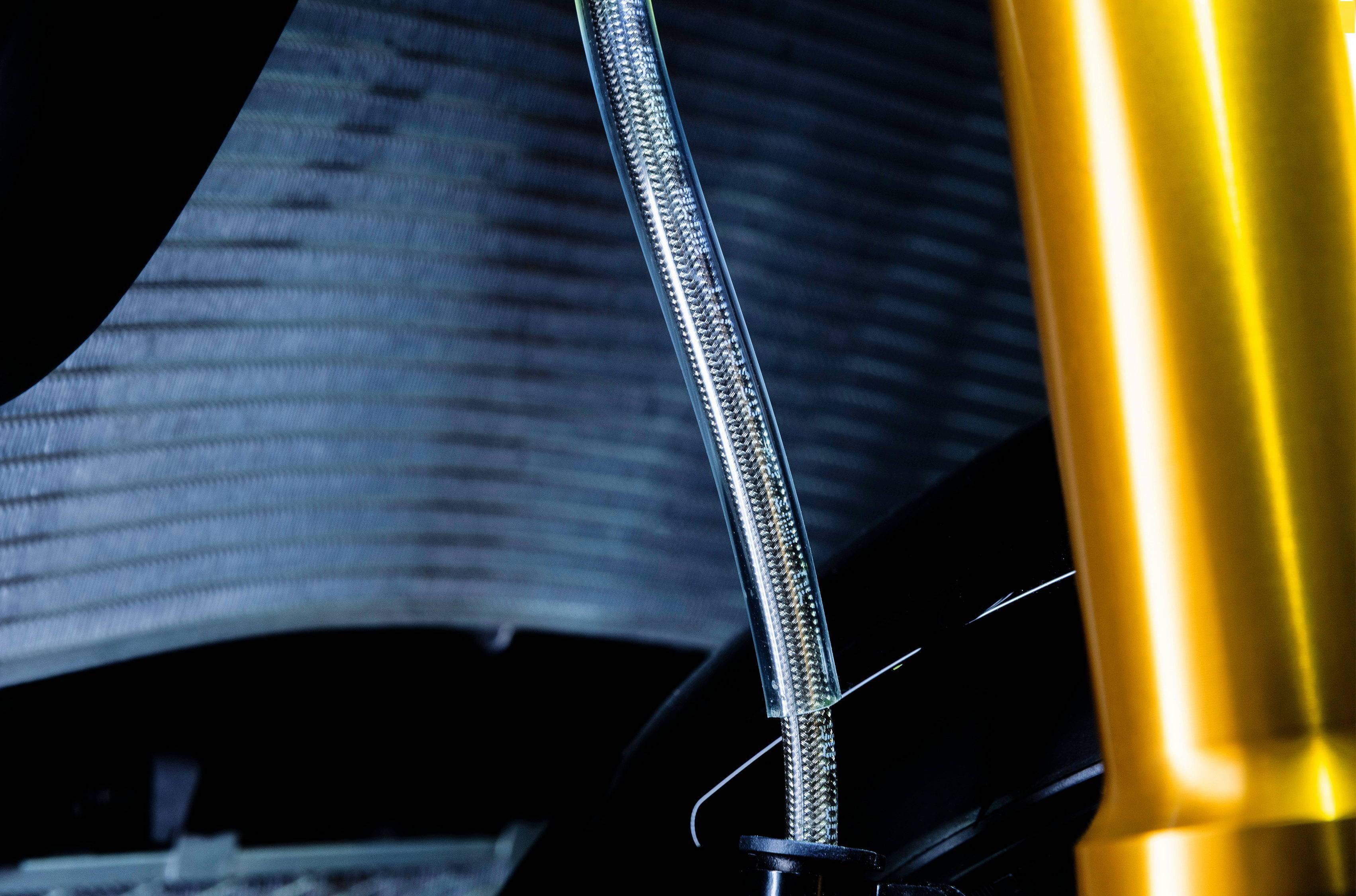 其他的差異,還包括 SP 版標(biāo)配了發(fā)動機(jī)底部的整流罩,手感更好的編織式鋼制剎車管,以及獨(dú)特的車體圖案等。