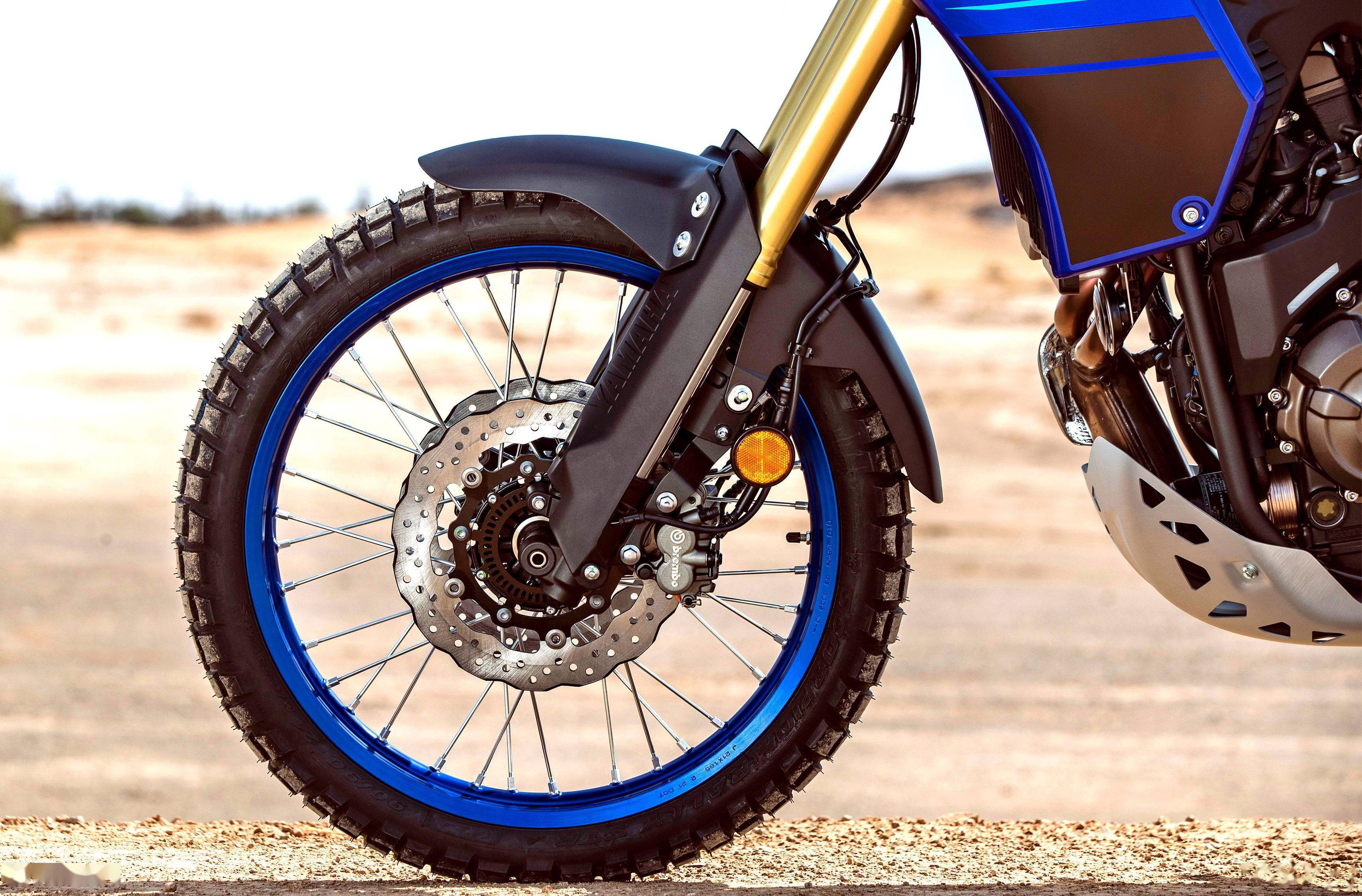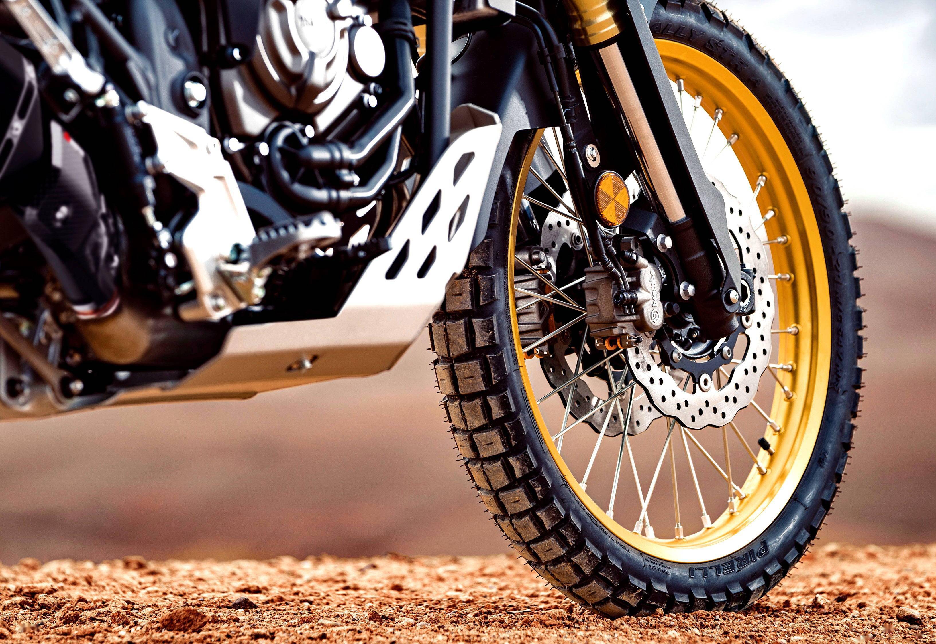 首臺 Tenere “ 泰納爾 ” 面世之后的幾十年里,掛著這一名字的 Yamaha 產(chǎn)品(這里說的主要是量產(chǎn)車型),其設(shè)計都較為傾向于越野性能、而非常規(guī)鋪裝道路上的運(yùn)動駕駛:從最初的單氣缸車型 XT600、XTZ660,到現(xiàn)在搭載兩氣缸機(jī)器的后繼車型 XTZ700,在設(shè)計上、強(qiáng)調(diào)越野性能的一個標(biāo)志性選擇,就是使用前 21、后 18 英寸直徑的輪框。而早期的 XTZ600、XTZ660 則是采用前 21、后 17 英寸直徑的輪框,作為一個平衡的選擇。
