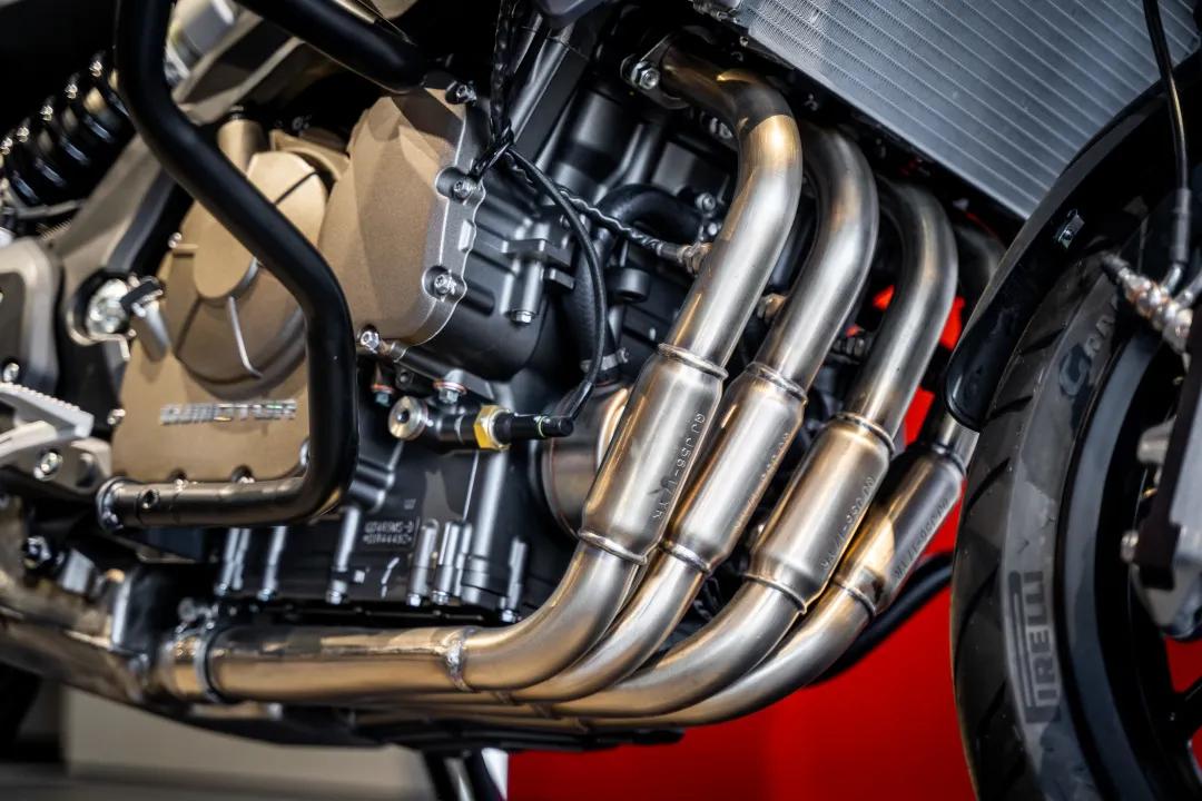 前后輪胎均是采用的17寸鋁合金輪轂配公路胎,配置了倍耐力的旅行車專用系列,天使胎GT,前120/70-17和后180/55-17。從這樣的搭配中我們就能看出這臺(tái)車更加偏向于公路騎行,有點(diǎn)類似于汽車中“城市SUV”的概念。