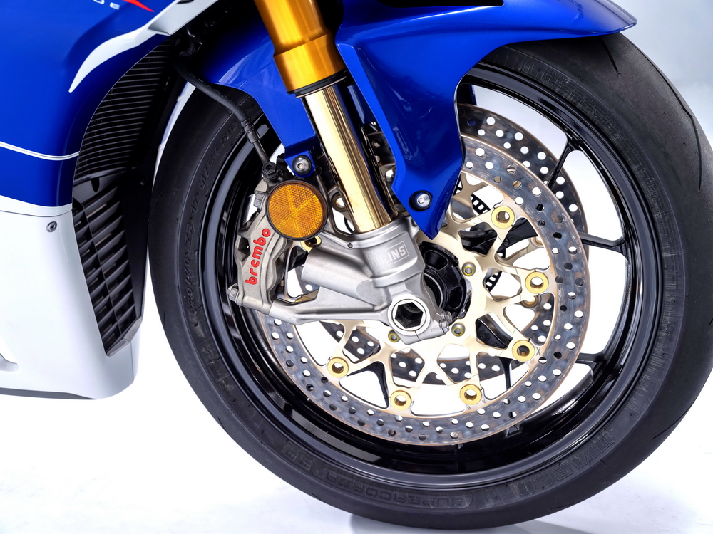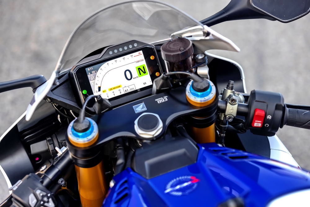 車體方面,沿用了 2021 款的鋁合金制雙翼樑式的車架,SP 版配備了來自 Ohlins 奧林斯的 S-EC(Smart Electronic Control,智能電子控制)電控懸掛系統(tǒng),Brembo 的制動系統(tǒng),金色的前后輪框(標準款采用黑色的輪框)。而三十周年紀念限量版,采用了一個與 1992' CBR900RR 經(jīng)典圖案有著相近風格的外觀貼花,消聲器上帶有激光蝕刻的三十周年紀念字樣,鑰匙以及車身多處、也有著對應(yīng)的紀念標識。