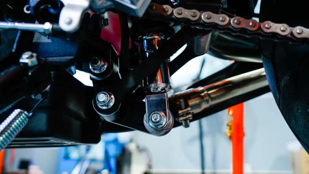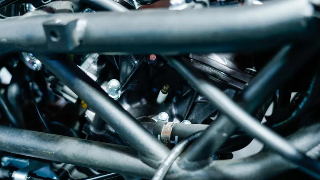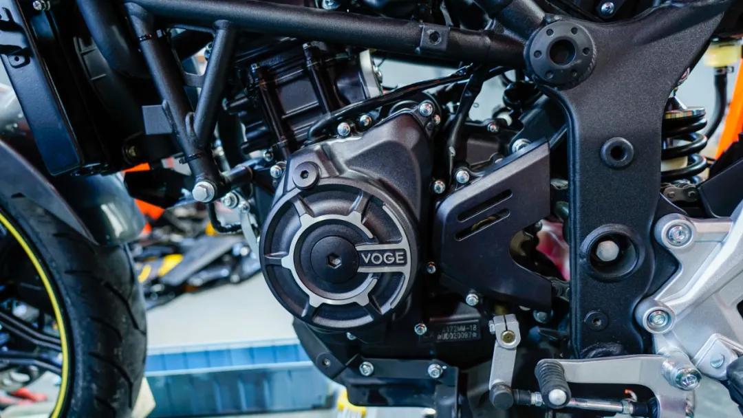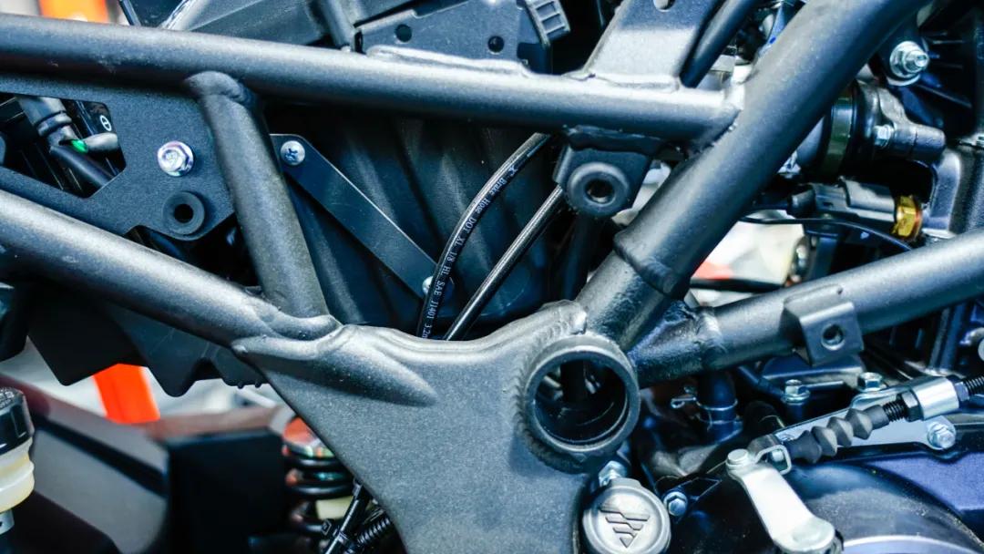 發(fā)動(dòng)機(jī)為隆鑫全新開發(fā)的代號為KE250的單缸四氣門水冷發(fā)動(dòng)機(jī),這臺(tái)發(fā)動(dòng)機(jī)優(yōu)勢之一就是輕量化,根據(jù)官方提供的數(shù)據(jù),該發(fā)動(dòng)機(jī)的重量僅為30kg,也是整車輕量化的貢獻(xiàn)者之一。不過除此以外,我注意到發(fā)動(dòng)機(jī)前部有一個(gè)發(fā)動(dòng)機(jī)固定孔位在這臺(tái)車上并未使用到,再回顧先前曝光出的無極后續(xù)的產(chǎn)品序列,那么可以推斷該發(fā)動(dòng)機(jī)平臺(tái)后續(xù)將會(huì)推出街車、復(fù)古等一系列車型。