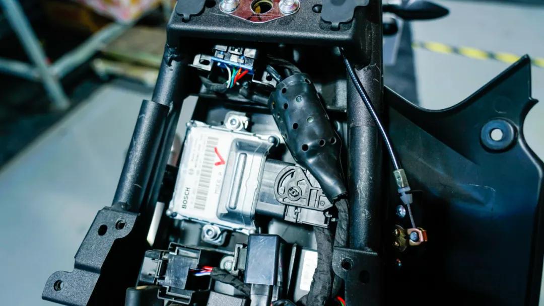 依舊是在車身覆蓋件部分,整體車身塑料件做工非常扎實(shí),無論是摸起來還是用手掂都能感覺到車身塑料件明顯比我們先前拆解過的同級車更厚實(shí)更重,這里聯(lián)想到在整體車殼并不輕的情況下,無極250RR依舊能做到整備質(zhì)量僅147KG的優(yōu)秀成績,由此可見無極對于車輛輕量化的功力!