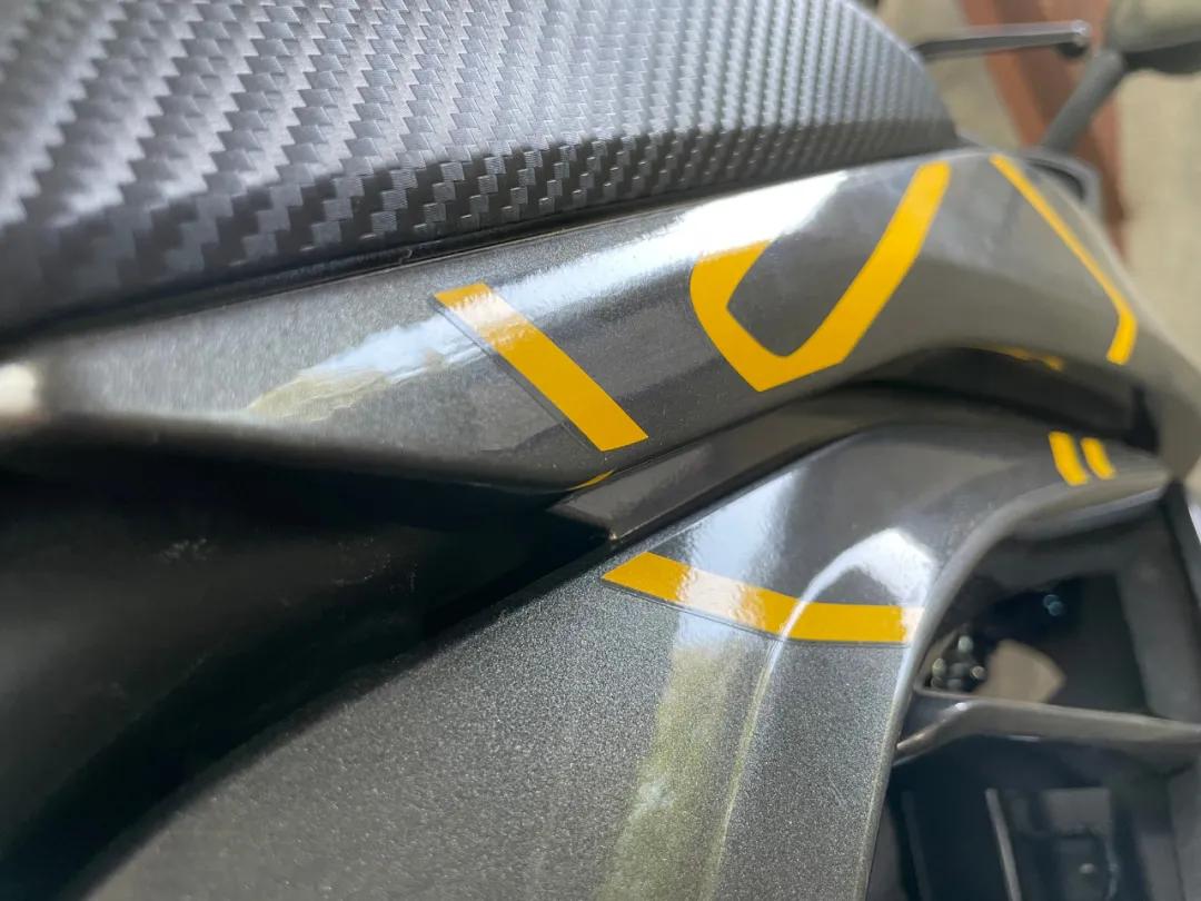 值得在注意的是,車身部分帶漆塑料件的貼花是做在清漆層外側(cè),而油箱部分的貼花則是做在了清漆內(nèi)側(cè);而在拆解完成后,復(fù)裝車輛時(shí)我發(fā)現(xiàn),由于無極250RR側(cè)板采用了三層結(jié)構(gòu),環(huán)環(huán)相扣,但塑料件之間并未做止震處理,部分塑料件相接處用手敲擊能明顯感受到曠量。對于這樣一臺(tái)單缸車來說,后期這些地方可能會(huì)出現(xiàn)異響,希望無極廠家能夠優(yōu)化。不過好在無極原廠“炸街”排氣的優(yōu)良傳統(tǒng)得以保留,排氣聲是可以讓我們被動(dòng)忽略一些異響的。