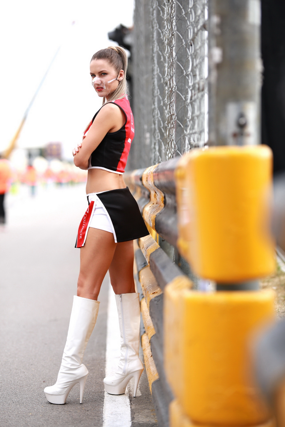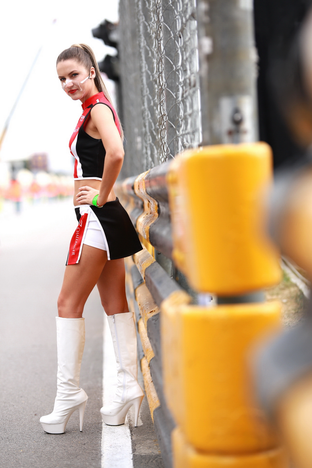 下面的圖片,比賽現(xiàn)場的賽車女郎(攝影:Max Cher)。