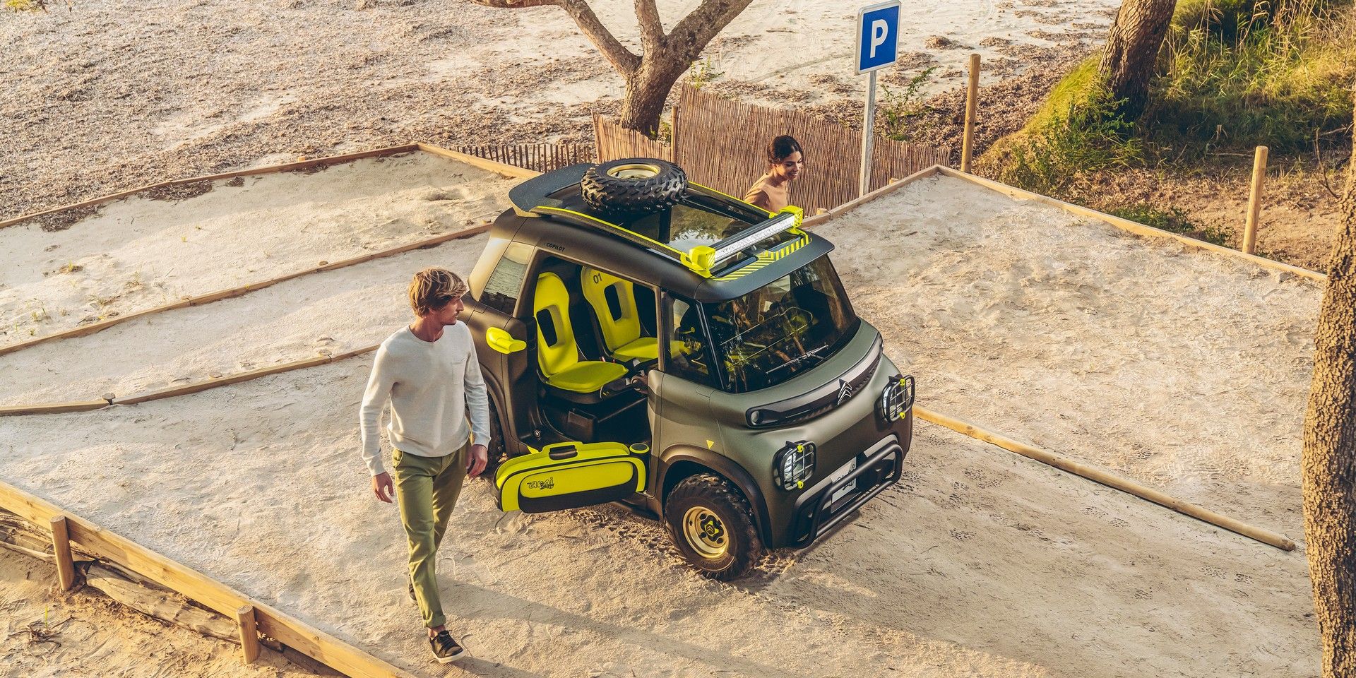 My Ami Buggy Concept是專為想要探險小旅行的玩家而設(shè)計,續(xù)航里程和極速都不大,然而純電動力讓它能在山林間以無噪音、零排放的方式行進,無車門搭配全景車頂?shù)脑O(shè)計,也提升了駕駛樂趣,讓駕乘者更能沉浸在冒險的旅途中。