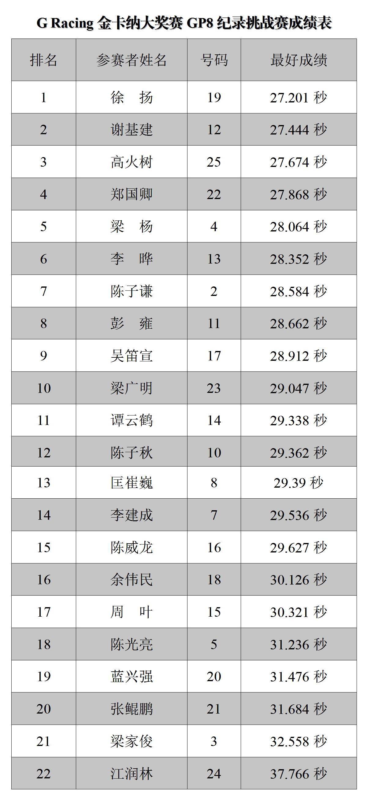 下面的圖片,GP8 記錄挑戰(zhàn)賽的三甲和成績。