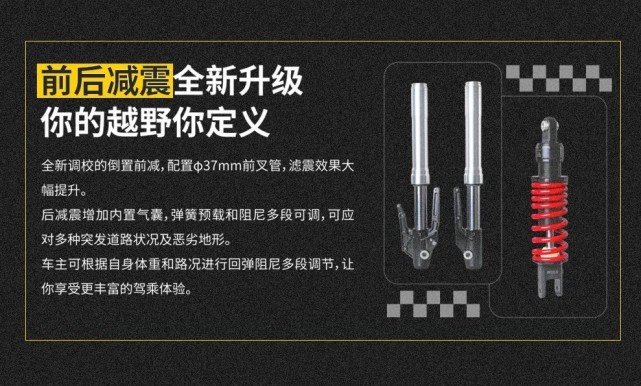 主要的是減震方面的升級(jí),不過(guò)并沒有給出具體的行程數(shù)據(jù),倒立式前叉進(jìn)行了重新調(diào)教,后避震增加了內(nèi)置氣囊支撐性更好,而且還支持彈簧預(yù)載和阻尼調(diào)節(jié)功能。