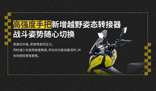 手把加高是越野版最大的特點(diǎn),除了能夠提升駕駛舒適度之外,甚至還可以實(shí)現(xiàn)站立騎行的姿態(tài)。