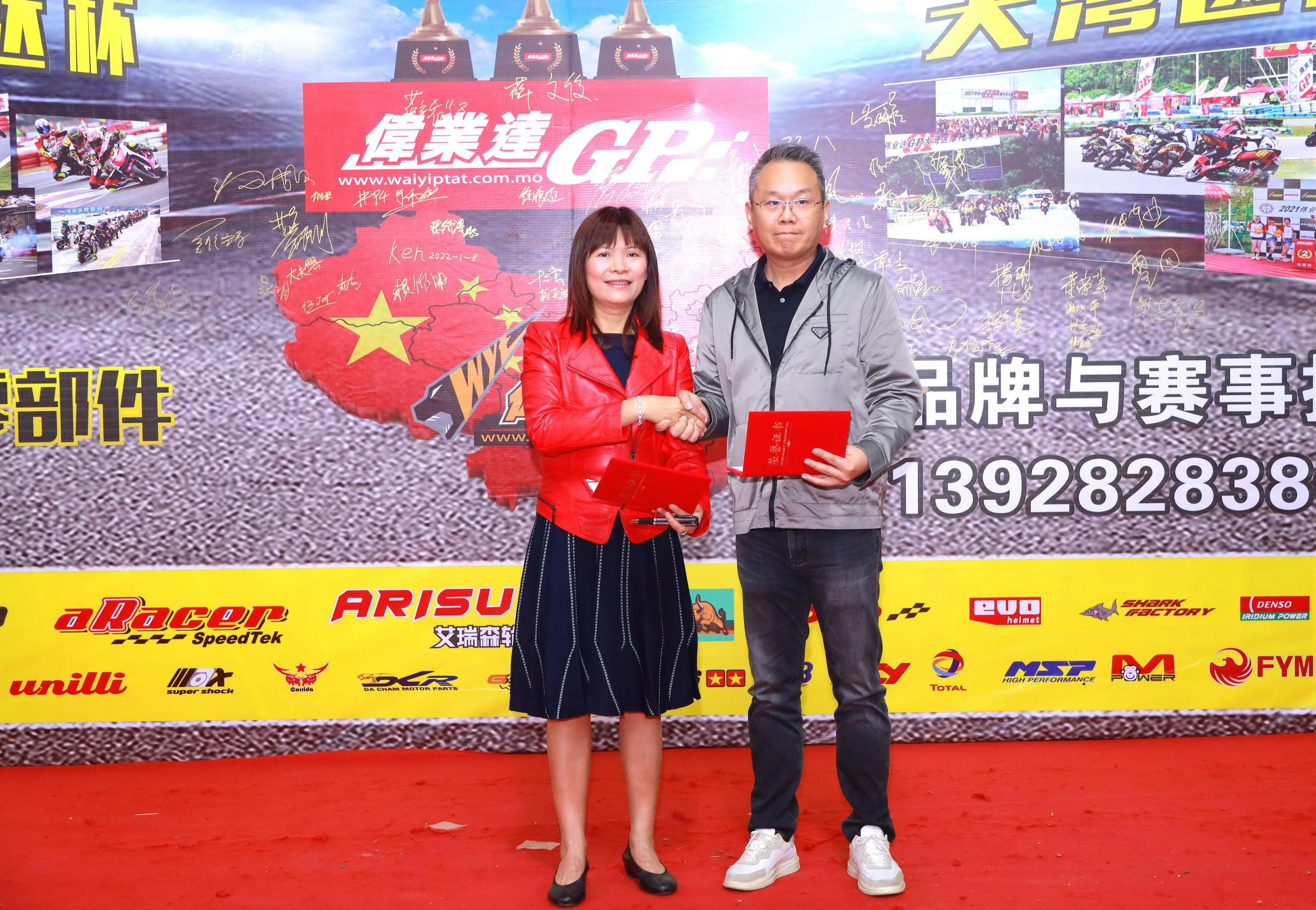 頒獎(jiǎng)活動(dòng)進(jìn)入尾聲的時(shí)候,澳門(mén)偉業(yè)達(dá)公司的代表何麗英女士和廣東省汽車(chē)摩托車(chē)運(yùn)動(dòng)協(xié)會(huì)的代表共同宣布,2022 年度偉業(yè)達(dá) GP、大灣區(qū)摩托車(chē)大賽第一回合的比賽,擬于三月 26 日、在廣東恩平大河馬賽車(chē)場(chǎng)舉行。
