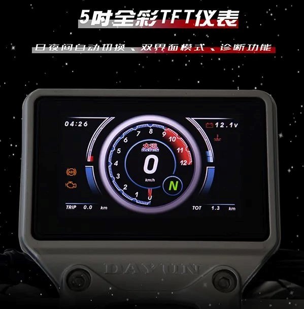 5寸的全彩TFT儀表,提供日間、夜間兩種顯示模式,儀表盤的內(nèi)部設計也很規(guī)整,所需要的數(shù)據(jù)一應俱全,除了一些核心基本數(shù)據(jù)之外,還包括擋顯、電壓。
