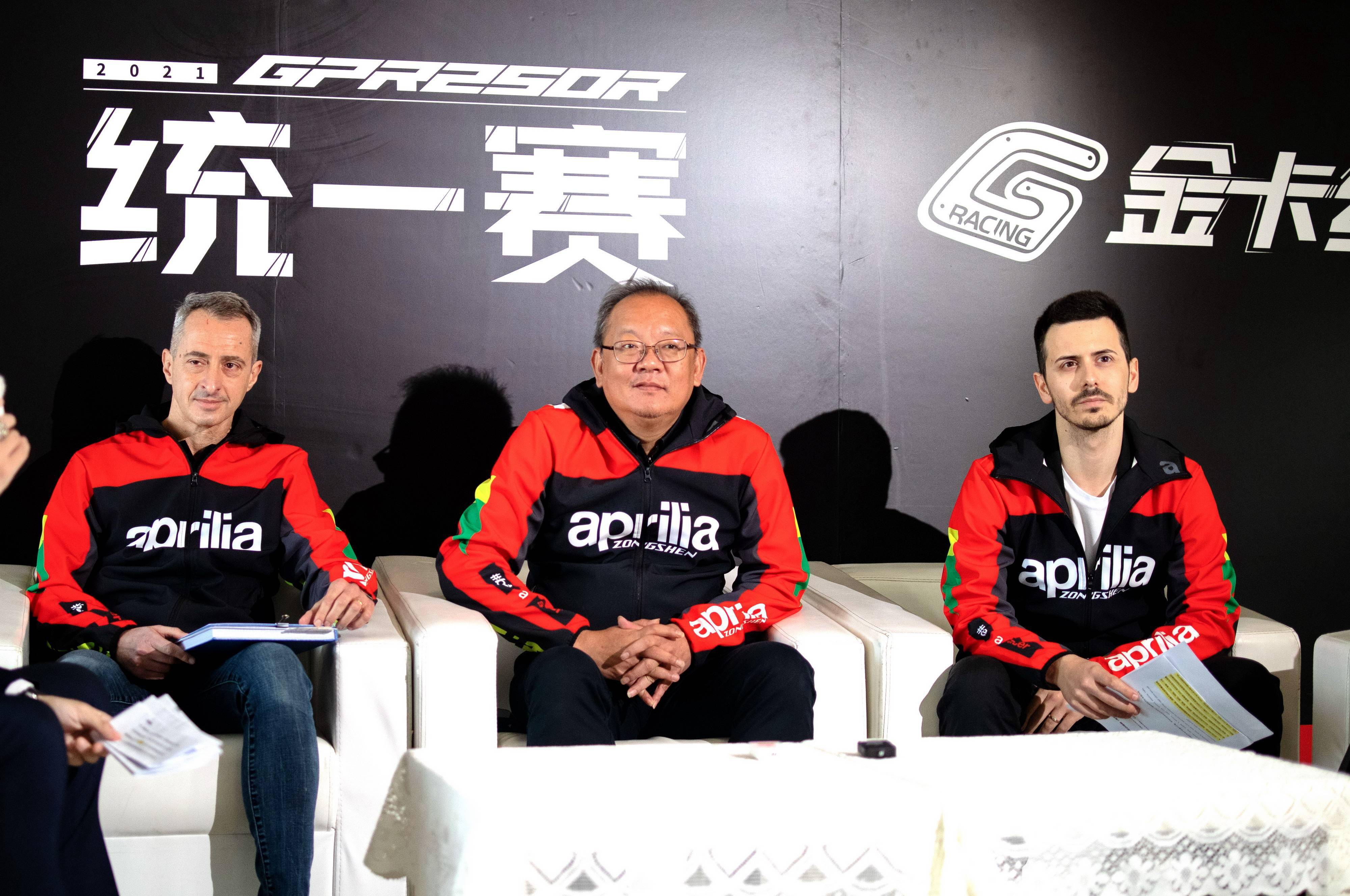比賽現(xiàn)場的采訪會(huì),下圖左起:宗申.比亞喬的研發(fā)副總 菲亞卡文托(Marcello Fiaccavento)先生,宗申.比亞喬的總經(jīng)理 余自強(qiáng)先生,宗申.比亞喬的 OEM 總監(jiān) 法拉利(Vittorio Ferrari)先生。