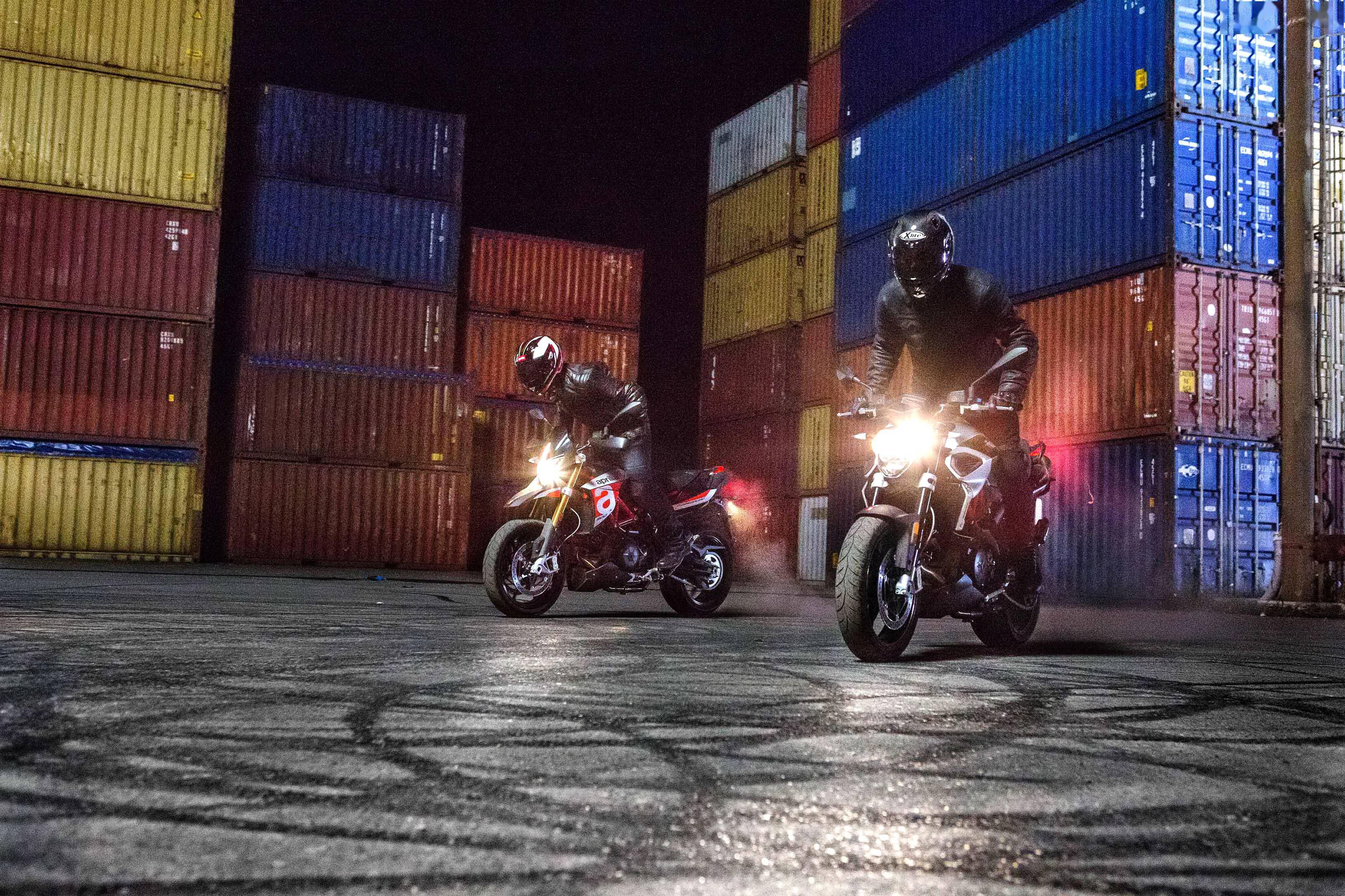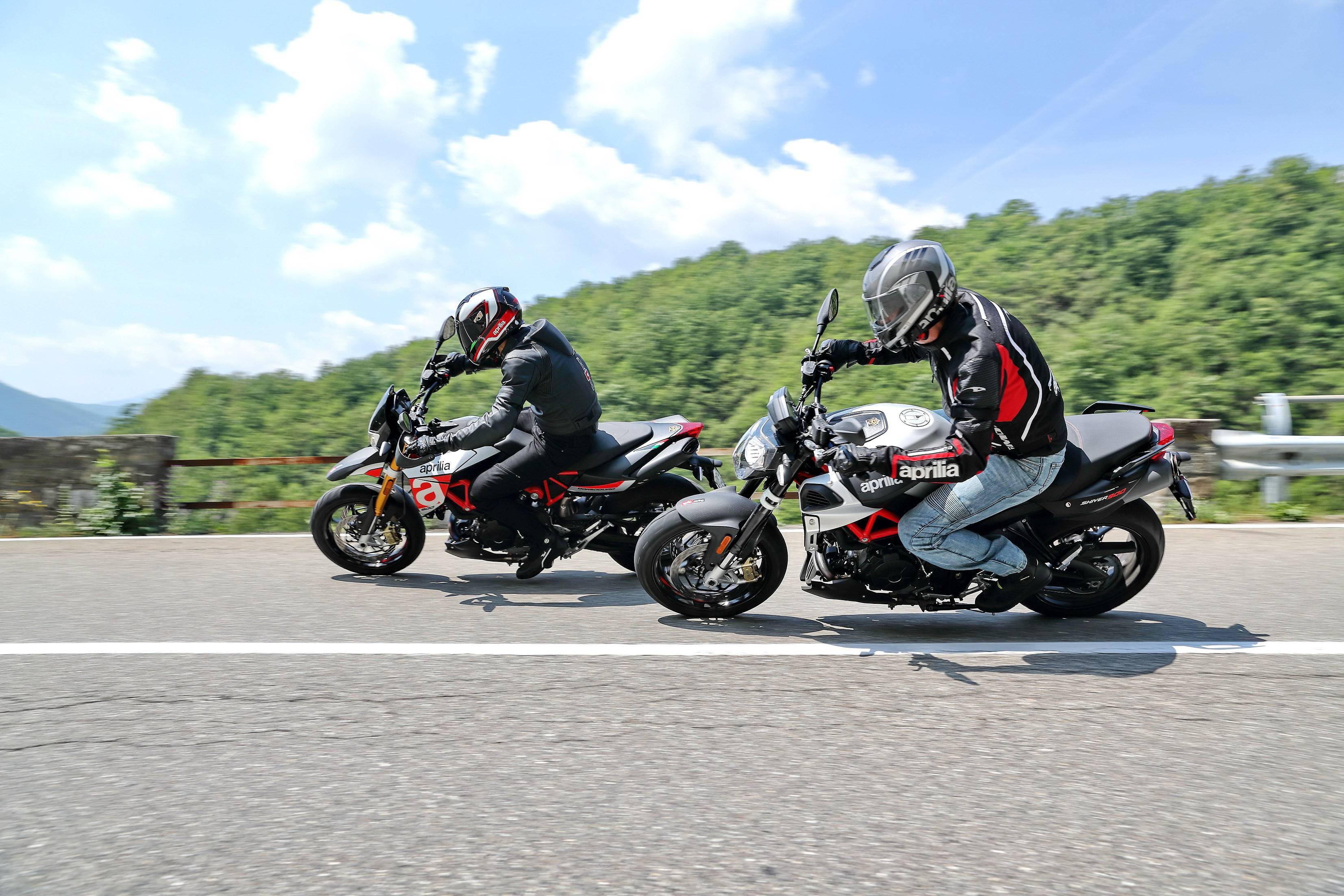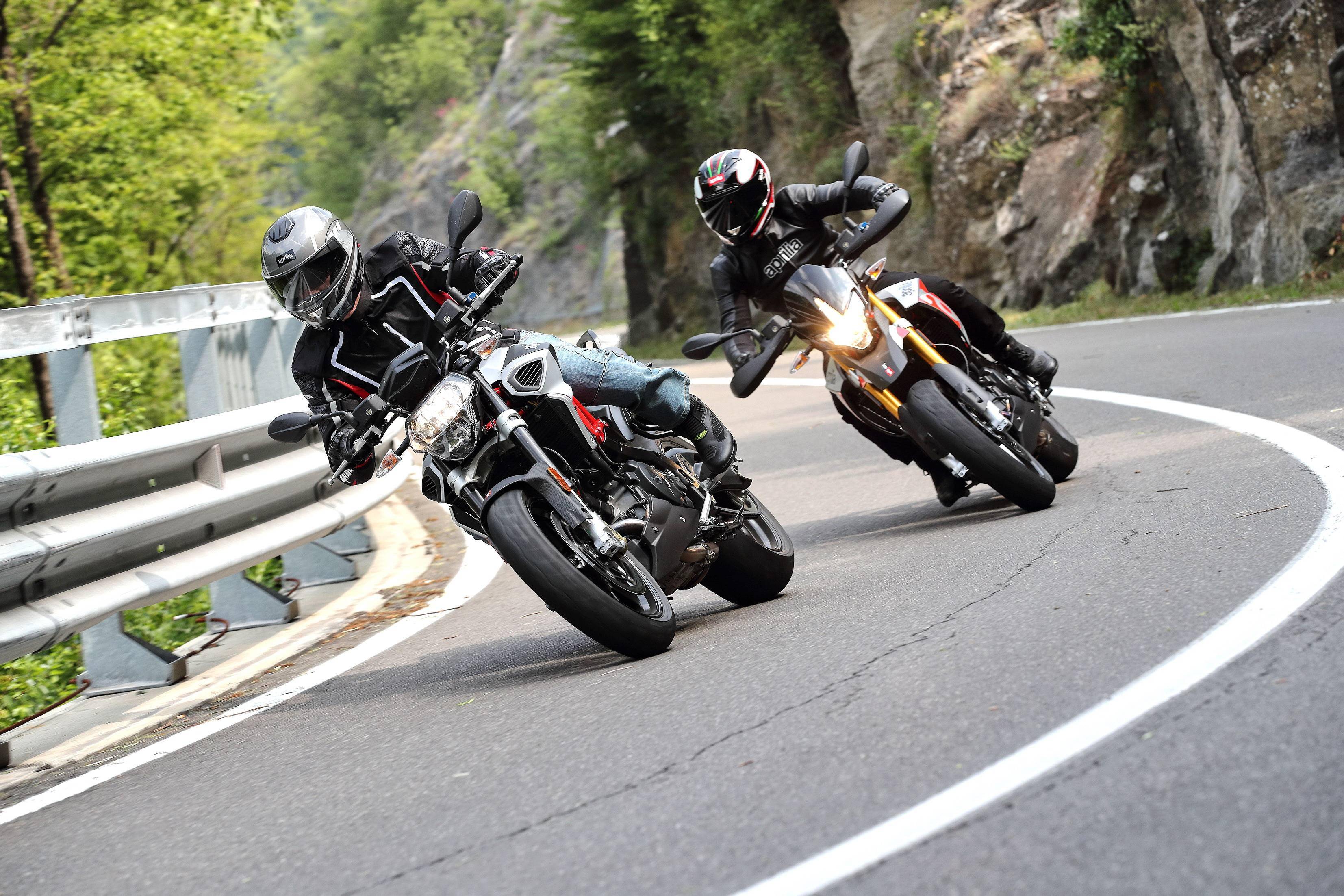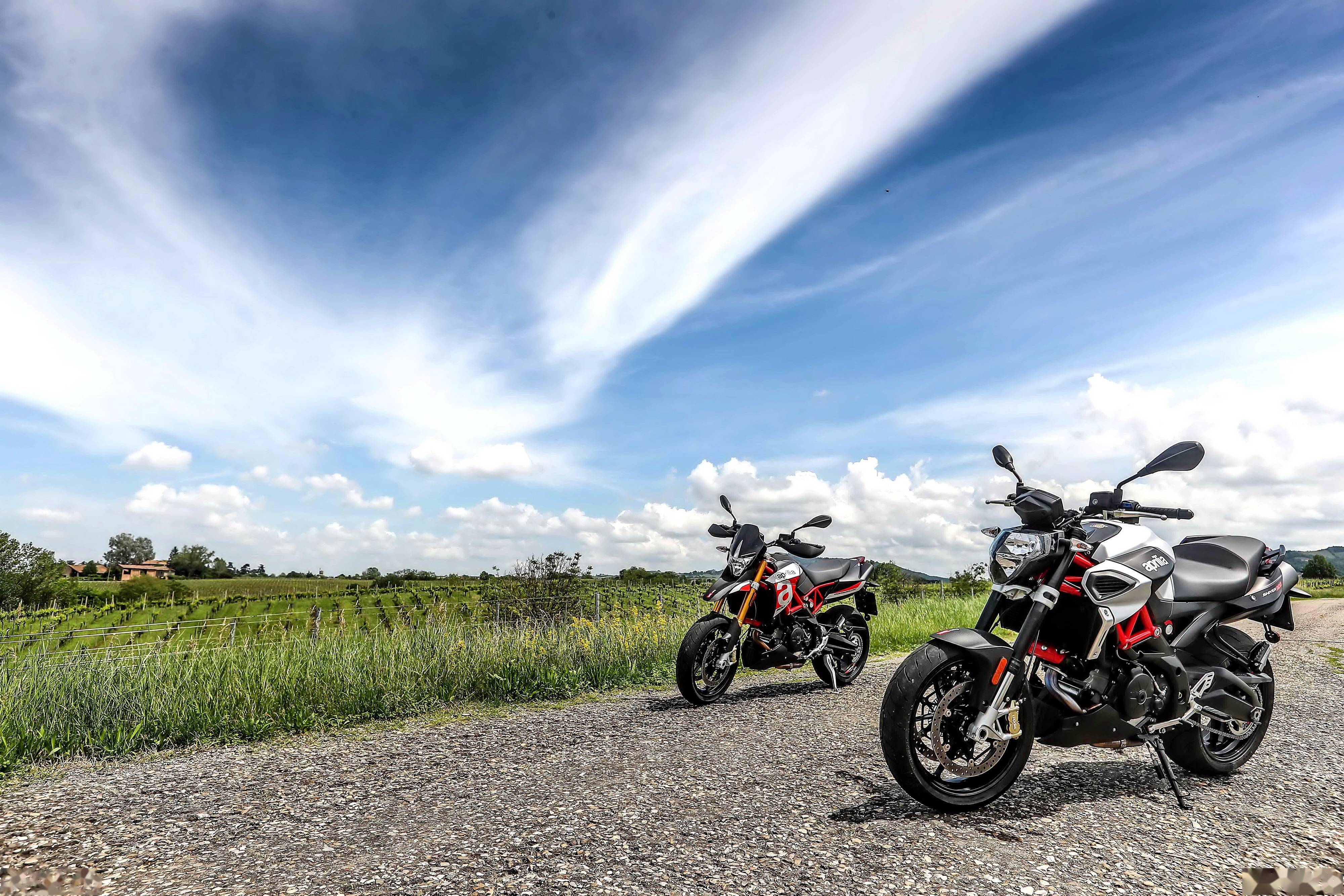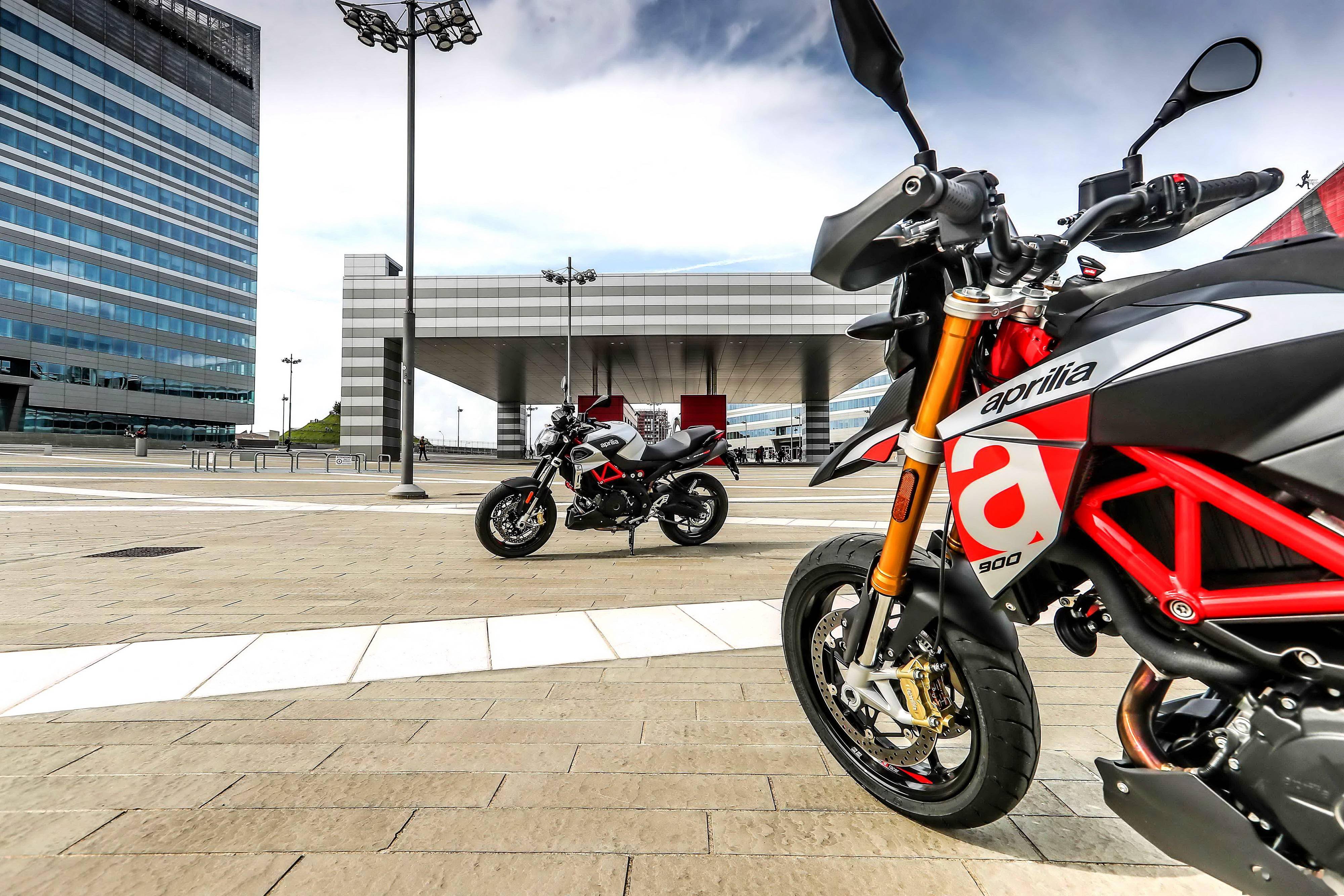 下面的圖片,2017&apos SL 900 Shiver 運(yùn)動(dòng)街車、SMV 900 Dorsoduro 公路越野(資料圖片)。
