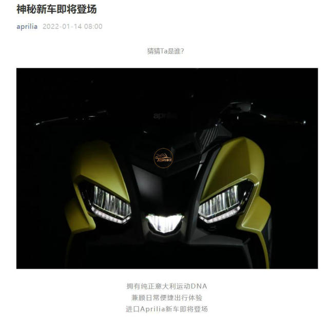 核心提示:今天,阿普利亞發(fā)布了一則新車預(yù)告,關(guān)鍵詞:運動DNA、兼顧日常便捷出行、進口,通過對比現(xiàn)有車型不難發(fā)現(xiàn),這款即將上市的新車