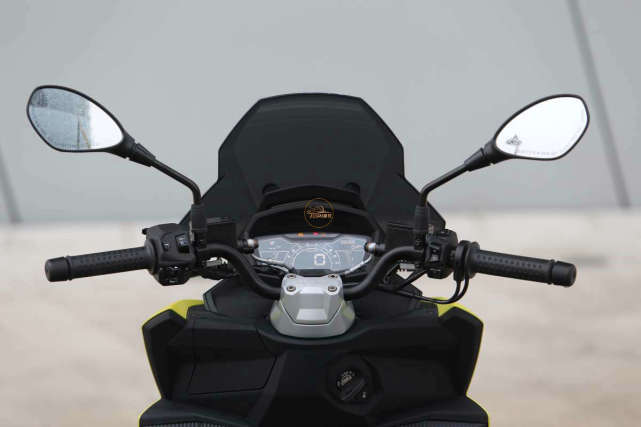 為了營造舒適的騎行三角和騎行姿態(tài),SR GT配備了寬桿手把,而且后視鏡以及手把按鍵的設(shè)計,都不同于傳統(tǒng)踏板車型,是更接近跨騎的這么一種姿態(tài)。