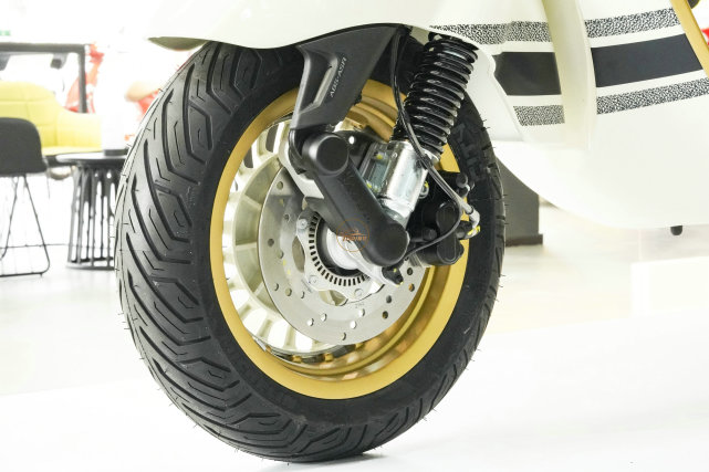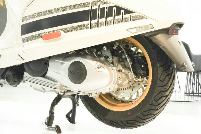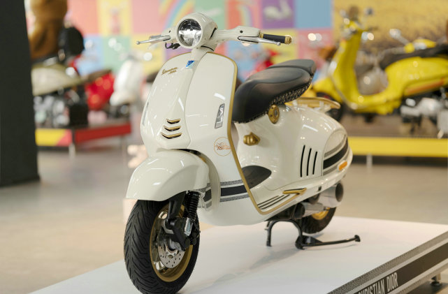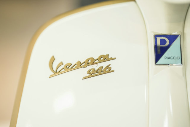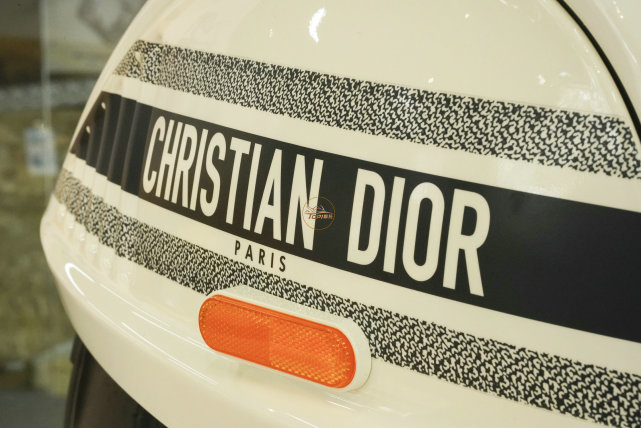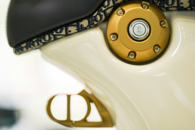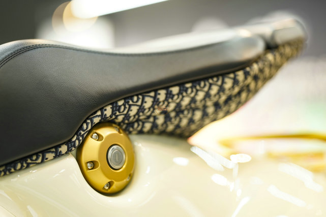 Vespa 946 Christian Dior,以米白色車身為主,以金色緞面為輔,彰顯Dior的時(shí)尚美學(xué)。