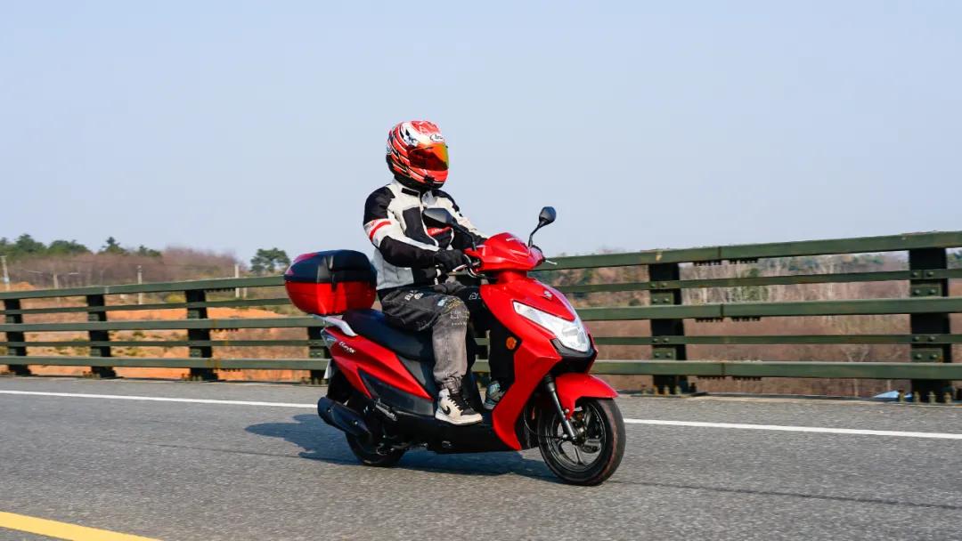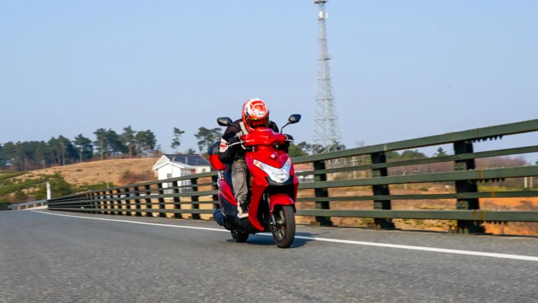 除卻日常通勤使用的需求,我們也把UE125拖到了春風(fēng)十里,跑了幾圈下來,對于UE125的表現(xiàn)還是較為滿意的。112kg的體重帶來的輕盈感,在彎道中很好用,在走線出現(xiàn)失誤時(shí),不同于大排高自重帶來的較大慣性,UE125可以很靈活地修正路線,駕乘起來很輕松。