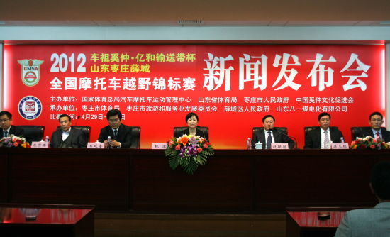 2012薛城全國(guó)摩托車場(chǎng)地越野錦標(biāo)賽將于4月29日-5月1日在山東省棗莊市薛城區(qū)舉行。屆時(shí)將有來(lái)自全國(guó)各地的近20支車隊(duì)、100名車手參賽。賽事新聞發(fā)布會(huì)于4月20日在北京召開(kāi)。