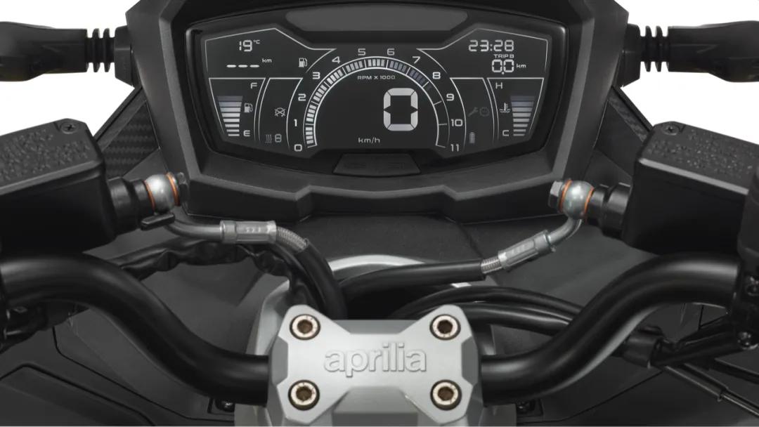 全數(shù)字化儀表板和超大LCD顯示屏清晰呈現(xiàn)所有車輛數(shù)據(jù)以及各種行駛信息,騎士可通過左側(cè)控制模塊上的MODE按鈕進(jìn)行選擇。如選配Aprilia MIA車載互聯(lián)系統(tǒng),還可通過藍(lán)牙將智能手機(jī)與車輛相連,即可在儀表板上顯示有關(guān)來電和短信的通知。該系統(tǒng)同時支持使用右側(cè)按鈕啟用呼叫管理。