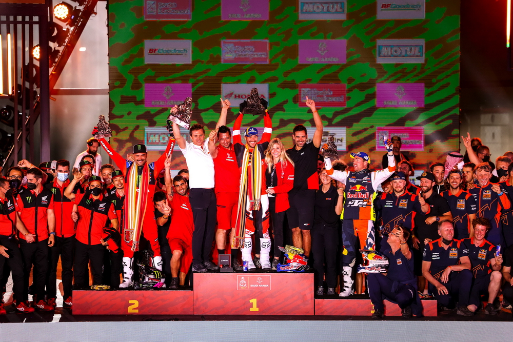 慶祝的現(xiàn)場,桑德蘭表示,“ 與 GasGas 的所有人一起慶祝在達喀爾獲得的勝利、真是太不可思議了,我將永遠記住這一天。這真的是整個團隊的努力,奧地利工廠里有這么多人全力支持拉力賽項目,所以能與他們分享這一特殊結(jié)果真是太棒了。”