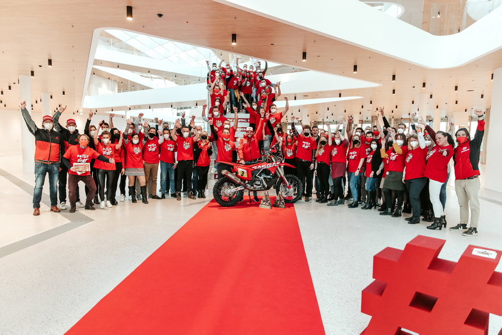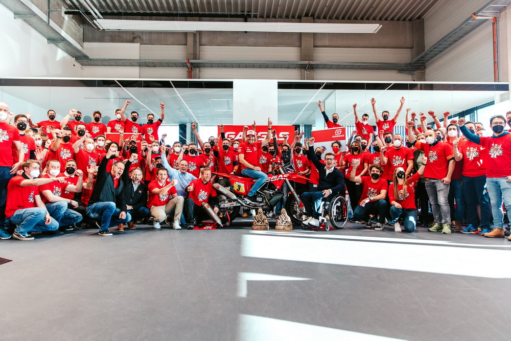 2022 達喀爾拉力賽結(jié)束之后,奪得了摩托車組冠軍的桑德蘭(Sam Sunderland)以 GasGas 首位達喀爾拉力賽冠軍的身份,來到了 GasGas 位于奧地利 Mattighofen 的工廠,與包括集團總裁皮勒(Stefan Pierer)在內(nèi)的工作人員,一起慶祝獲得這一歷史性的成績,并駕駛他的獲勝賽車,穿過 GasGas 這個新總部的多處建筑。