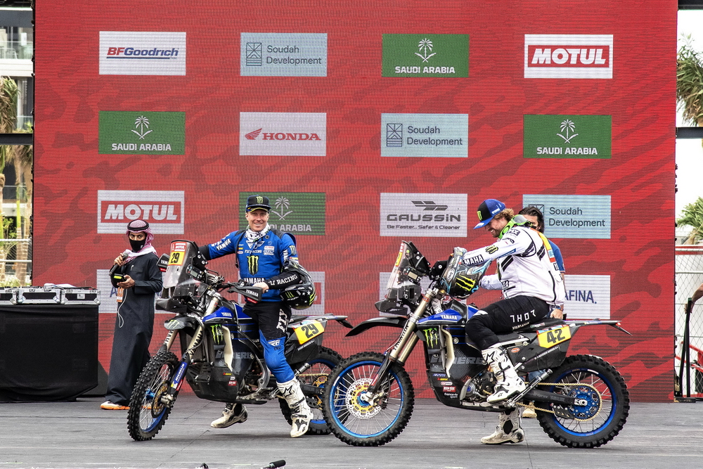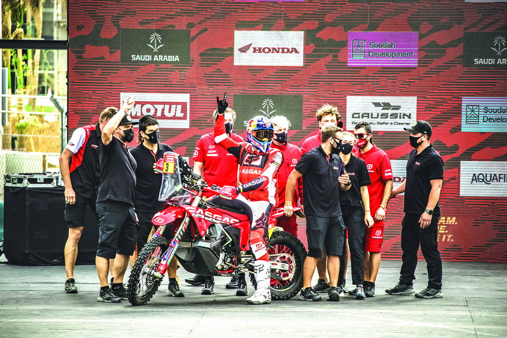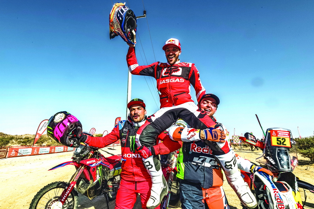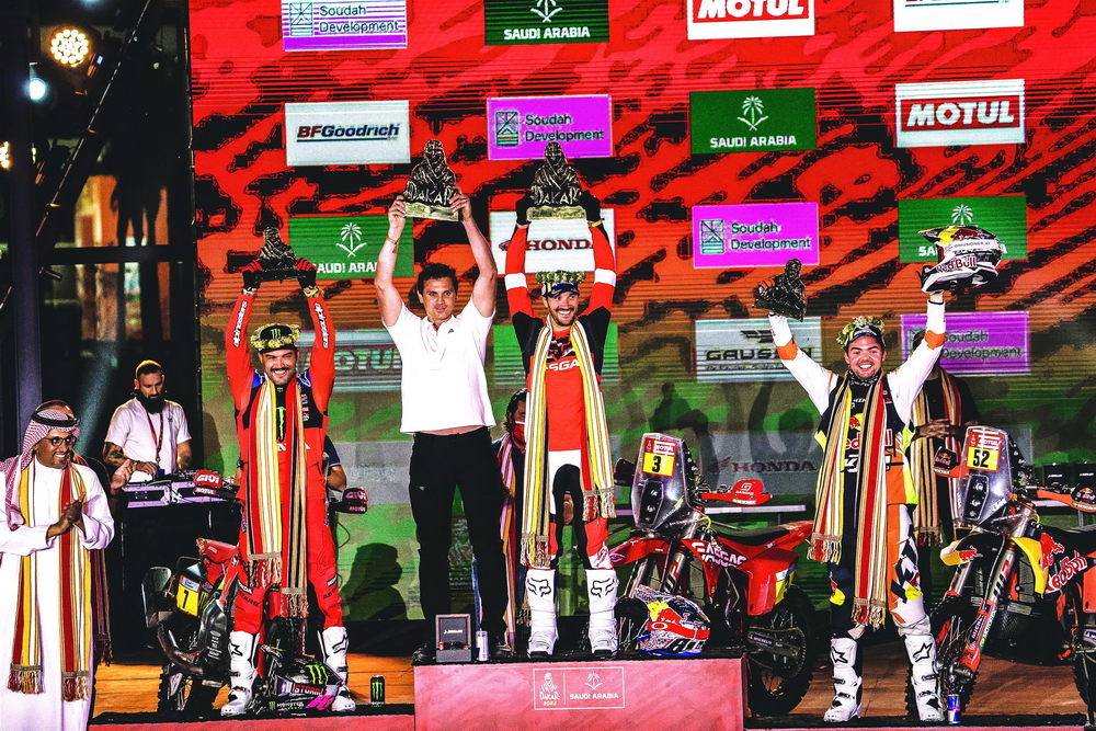 最終,憑借著穩(wěn)定的發(fā)揮,駕駛 3 號車、GasGas 工廠車隊的英國車手桑德蘭(Sam Sunderland)奪得了冠軍,完賽的總時間是 38 小時 47 分鐘 30 秒,這是他繼 2017 年之后,第二次奪得達喀爾的勝利。駕駛 7 號車、HRC 工廠車隊的智利車手昆塔里拉(Pablo Quintanilla),總時間落后頭車 3 分 27 秒(包括 1 分鐘的犯規(guī)罰時)、獲得了亞軍。駕駛 52 號車、KTM 工廠車隊的奧地利車手沃克納(Matthias Walkner)拿到了季軍。獲得三甲的車手,一頭一尾的時間差僅僅是 6 分 47 秒。