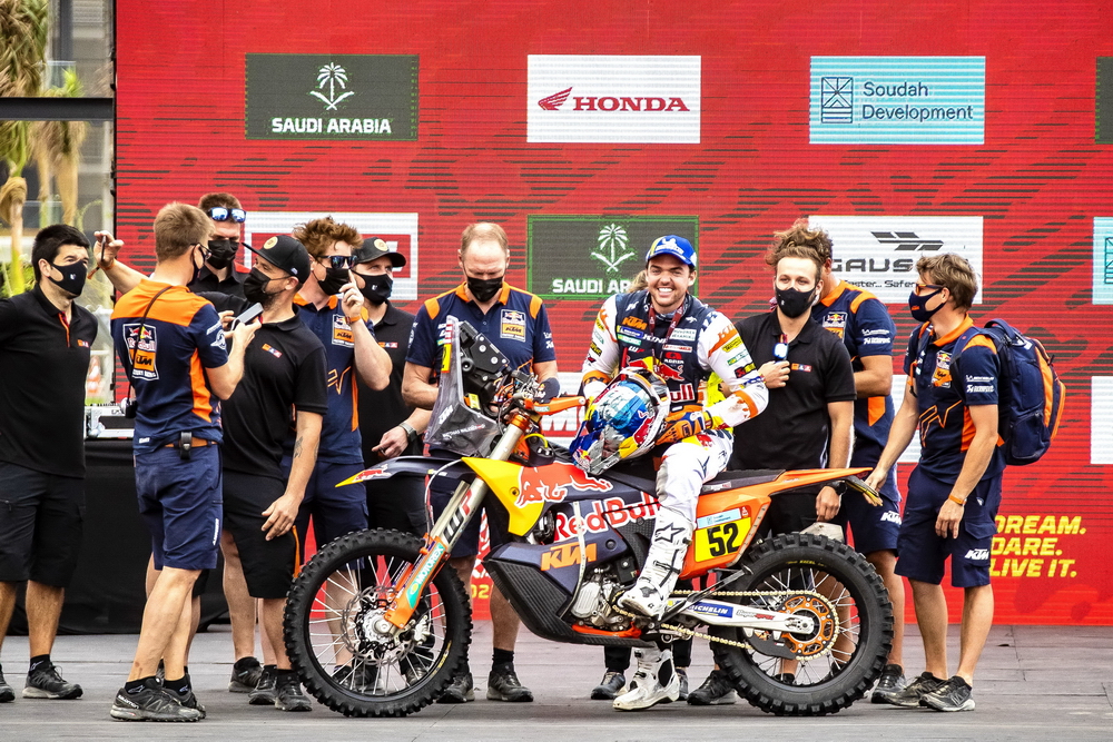 對于多支工廠車隊來說,本屆比賽堪稱是一個 “ 大團圓 ” 的結(jié)局:KTM 集團的三支工廠車隊,拿到了頒獎臺上的兩個席位,前十名的車手里、他們占了三人。另有一位來自獨立車隊的車手也進入了前十。