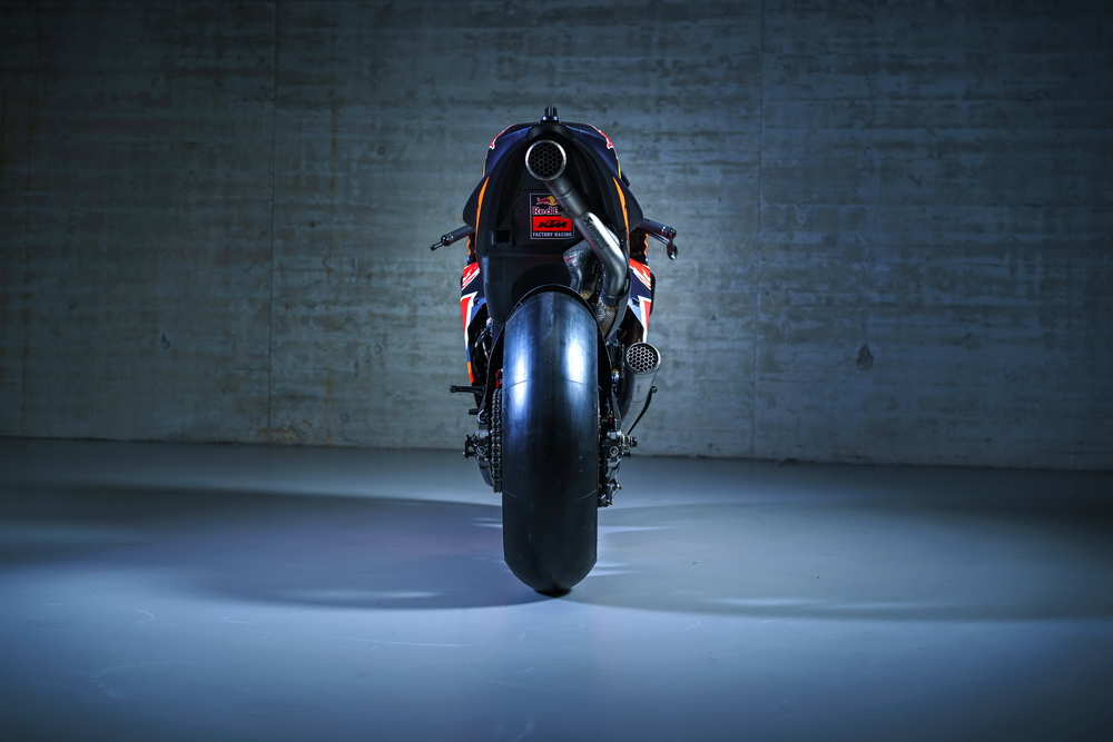 KTM 在 2004 年首次公開了他們的 MotoGP 動(dòng)力單元項(xiàng)目:GP1 990。該機(jī)器采用水冷四沖程V型 75 度四汽缸、DOHC 的設(shè)計(jì),呈放射狀排列的汽閥、氣動(dòng)式的閥門控制系統(tǒng),汽缸壁采用了最高端的涂層、缸徑 84 mm x 行程 44.6 mm,排汽量 990 cc(當(dāng)時(shí) MotoGP 賽例對(duì)最大排氣量的限制),鈦合金制作的連桿、干式的離合器,整副 GP1 990 的最大馬力輸出達(dá)到 230 匹,各個(gè)元件的設(shè)計(jì)可承受高達(dá) 18,000 rpm 負(fù)荷。