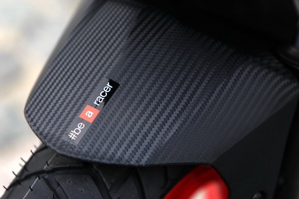 其他的配置,包括了全 LED 的燈光系統(tǒng),LCD 數(shù)字式的儀表板,前 14、后 13 英寸直徑的輪框,去除了傳統(tǒng)的啟動(dòng)裝置、采用直接聯(lián)接到曲軸之無(wú)刷電機(jī)的啟停系統(tǒng) RISS(Regulator Inverter Start & Stop System,變頻調(diào)節(jié)啟停系統(tǒng)),越野風(fēng)格的裸露式車把,外掛式設(shè)計(jì)的前風(fēng)擋等。
