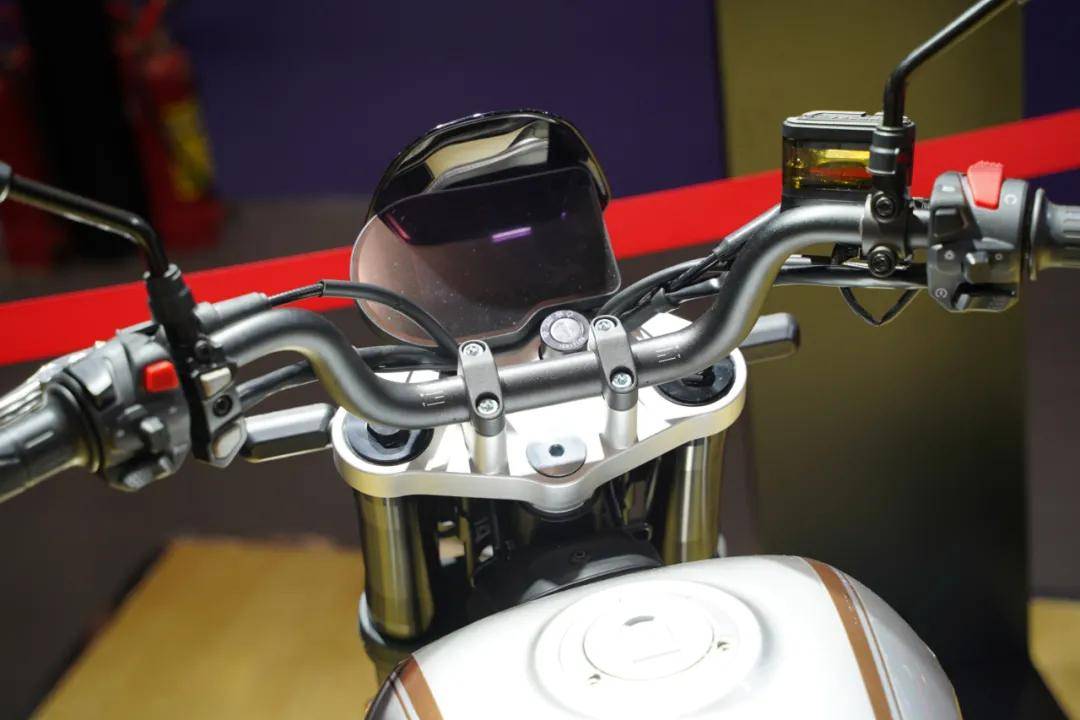 細節(jié)部分,車輛儀表、上聯(lián)板、手把壓碼也與展車有所不同,路試車搭載了一塊單色液晶儀表,而當時的展車則是搭載了一塊賽科龍多款車型在使用的TFT智能儀表,這里有兩種可能性,其一是賽科龍可能會推出高低配版本的RE2,其中儀表為配置差異之一;二是賽科龍可能是為了降低車輛成本及售價,提高車型競爭力,從而對一些配置進行了改動;手把壓碼改為一體式,更為精致。油箱部分則是新增了橡膠防滑貼。