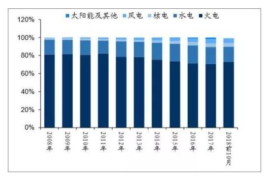 上面的計算還沒有考慮電動車?yán)匣?,電瓶充放電效率逐漸衰減,1-2年就要更換鉛酸電瓶(鋰電4-5年一換),3-4年就換一輛電動車,電動車、電瓶的生產(chǎn)和回收也都會產(chǎn)生碳排放和其他污染物等諸多情況,而摩托車13年才報廢,以后還可能免除強(qiáng)制報廢(雖然還遙遙無期),所以實際算下來,電動車的實際碳排放只會比上面的推算更大。除非有一天中國的電力生產(chǎn),火電比例大幅縮小,從歷史數(shù)據(jù)看,我國火電占比確實在逐漸縮小,但速度是很緩慢的,2008年約占比80%,14年也只下降了9個百分點(但火電總量其實是增加了)。