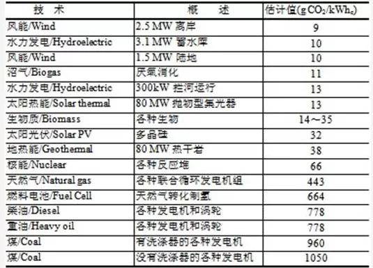(注:清潔能源也不是絕對零排放的,設(shè)備生產(chǎn)過程也是會產(chǎn)生排放的,如下圖一個科普文獻(xiàn)中對各種能源碳排放的估算,前些年火電排放為0.96公斤,目前由于技術(shù)進(jìn)步降低到0.87公斤)。
