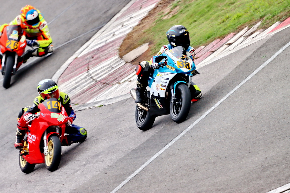 中國的公路賽車一般很少會(huì)專門設(shè)立女子組的比賽,所以在大部分的情況下,都是男女同場(chǎng)出賽、不分性別計(jì)算成績,偉業(yè)達(dá) GP 里的 MiniGP 150 A 組也如此。這是一個(gè)競爭非常激烈、同時(shí)也是國內(nèi)極具競技水平代表性的組別,這一組別的三甲,都是賽場(chǎng) “ 斗爭 ” 、“ 肉搏 ” 經(jīng)驗(yàn)非常豐富的車手。